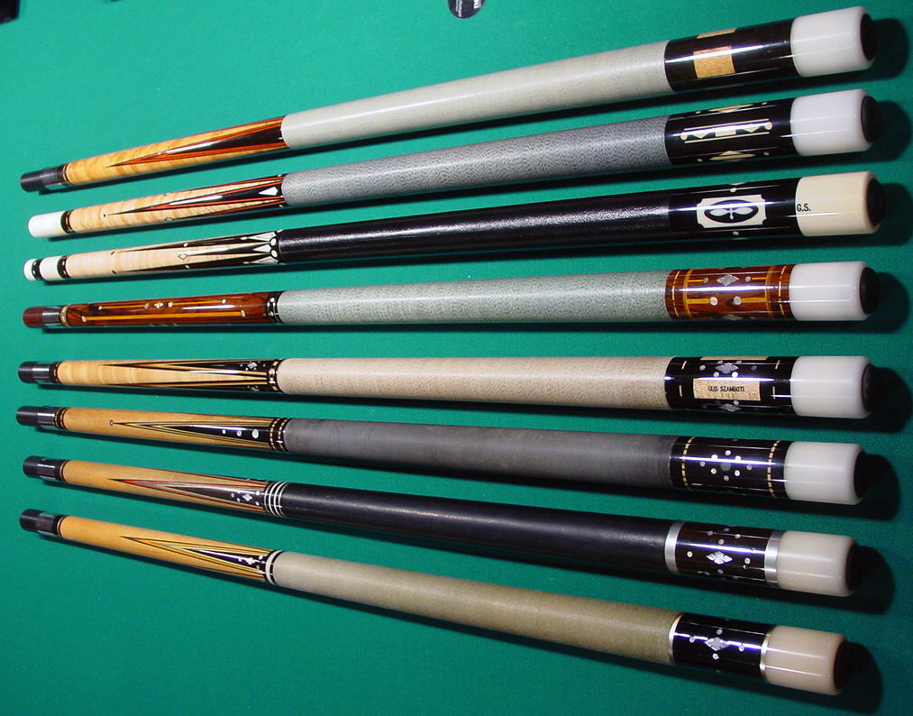 Is it possible to make a current topic devoted to photos of Gus Szamboti's cues. Alot of the old photos are gone and of the approx. 1,200 cues Gus made, how many are still in existence? If you have any photos of Gus' work please post them. It would be great to have them all in one thread. Here is one I purchased: