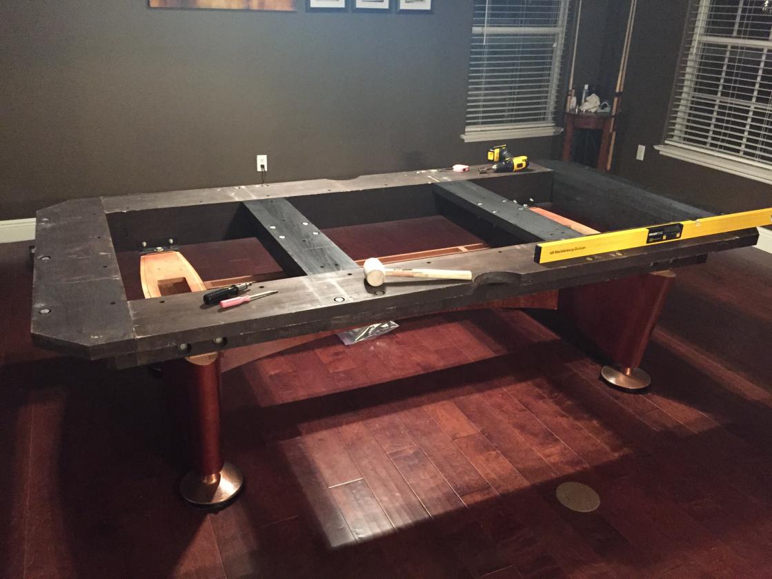 Can the angle iron be installed while slates are on ? I really dont want to strip the table , i just had it fine tuned yesterday . And yes the mechanic used the foot end adjustable shims , so im checking the joint frequently for any sagging i that area