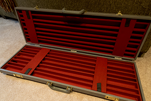 I came across this older Hardshell Cue Case and was wondering if anybody knows what brand it is and how much it could be worth. It holds 8 cues, is gray in color. The Hardware is pretty clean and latches work great. It does have one small tear that I think can be glued down and does have some marks on it, but the inside is perfect! Thanks for the help, Randy