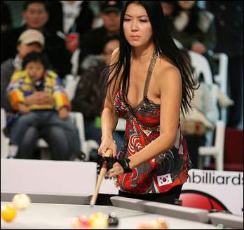 Even though it sounds sexist, I have a hard time watching someone that looks like a truck driver, I don't care how good she plays. Aside from that, I judge them on how they can play the game of pool. She can be homely as hell, don't care, as long as she doesn't look like a male version of a female.