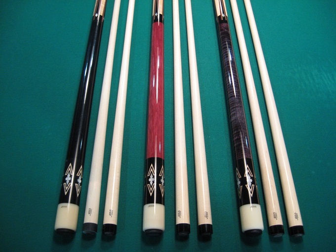 These three cues roll straight together and apart. Any shaft I put on the 1992 SP-34 rolls straight.