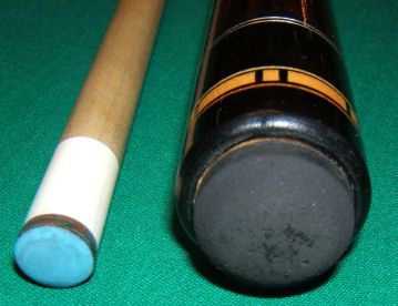 This cue has 6 points, 3 hi, 3 lo. Looks like phenoelic joint collars. Brass 3/8 11 pin? Bocote forearm, birdseye points with purple heart accents. Looks like cocobola butt. Rings are metal and maybe bocote. I traded a decent predator cue even up for it. The guy gave me a month to decide if I want to keep it. I'm thinkin I'll keep it regardless as it plays very well. But I need a new shaft on as it has a slight warp to it. Some people have suggested a kersenbrock because of the brass pin. Any help on this one would be truly appreciated. If you want the full size HQ pics I can zip and email them to you, just pm me an address. Or if you are in central Illinois and are in bloomington some time lmk in advance I'll get you a cell #.