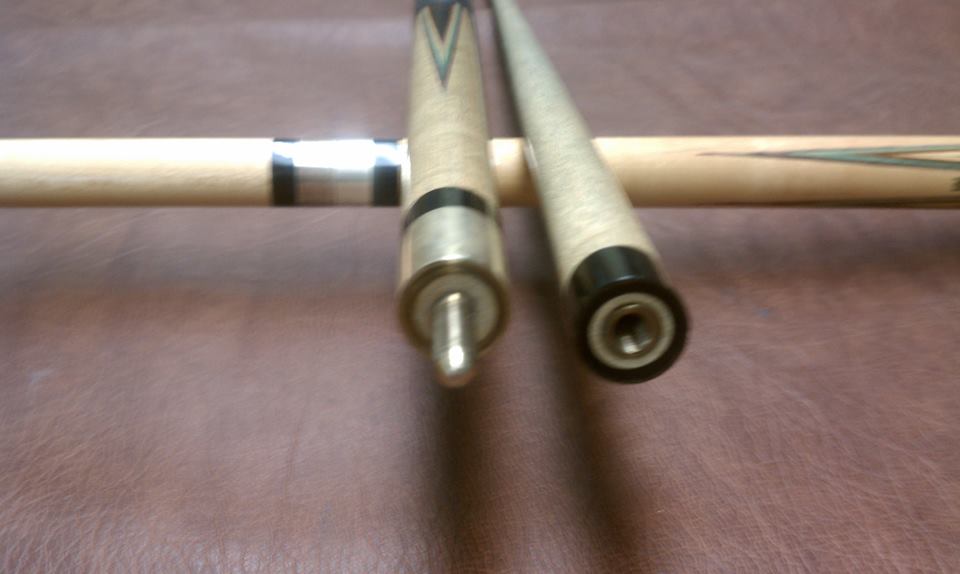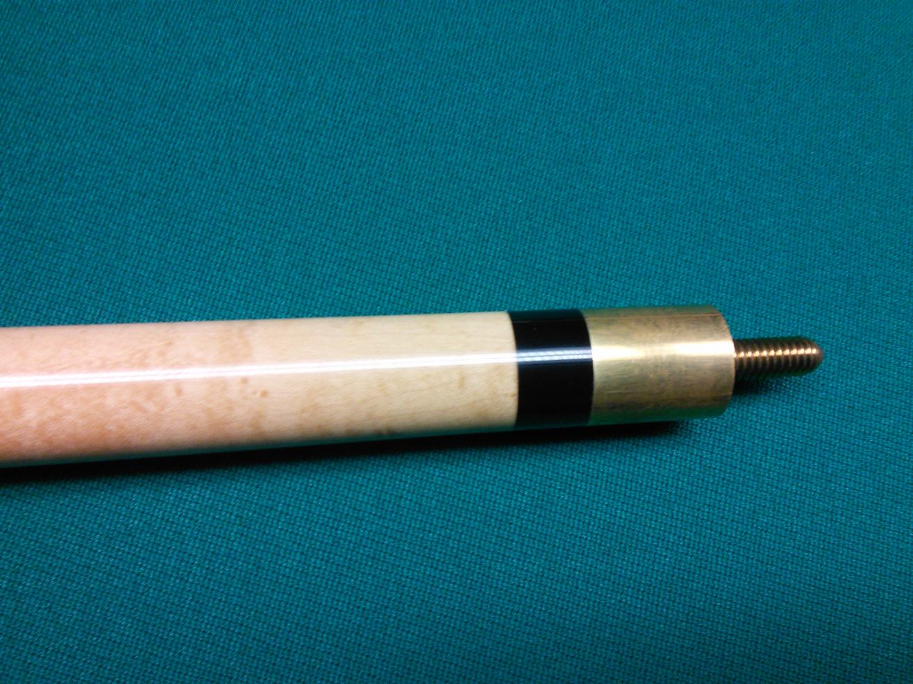 It belongs to an older guy that said he has had it for 30+ years originally purchased at a flea market. The joint is a flat-face joint w/brass sleeve and brass insert in the shaft, plus nice Titlist type points. He asked me if I thought it was a Willie Hoppe and I said I didn't think so because of the joint and butt sleeve/bumper, but I would ask around.