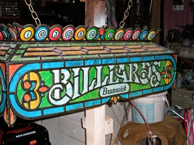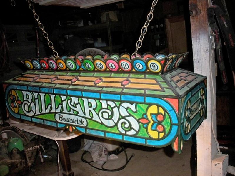 This is a promotional light from the 70's. It was designed to look like stained glass. There were about 4 or 5 different designs. I bought one like this that had a different color scheme for 125 about 2 years ago. Mine is Orange and green. Also, Mine did not have the balls on top. Neat light.