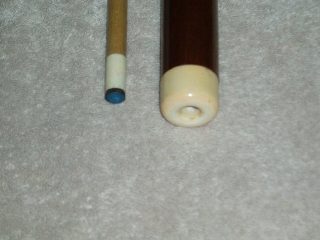 The cue is in excellent condition and has not been restored. It is a Titlist blank from way back then and it has been closet kept in a case. The butt cap is ivory as well.