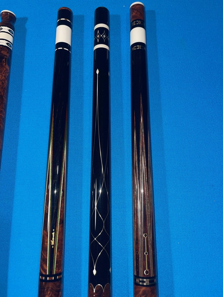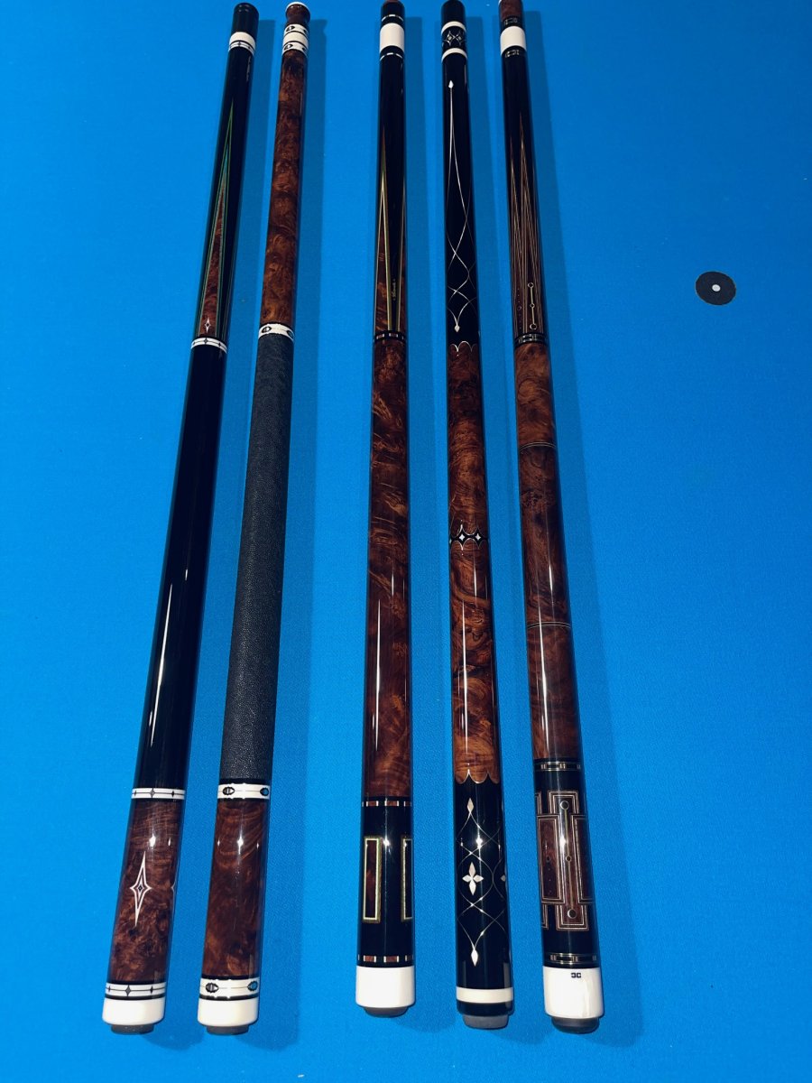 HRB....Some would argue one of the most beautiful cue woods in the world!Here is my Honduran Rosewood Burl Collection in progress. More to come over the years. L to R: Manzino, Manzino, Tascarella, Vigus, Coll, Durbin in separate photo.
