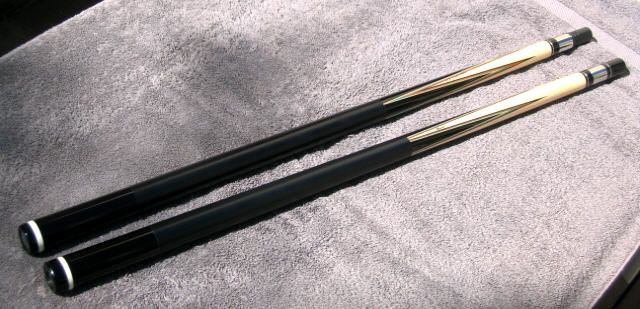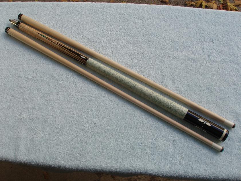 I had Rick Howard convert the Titlist on the far right several years ago. The second cue from the left is an Omen I had made and the bottom cue is my daily player.