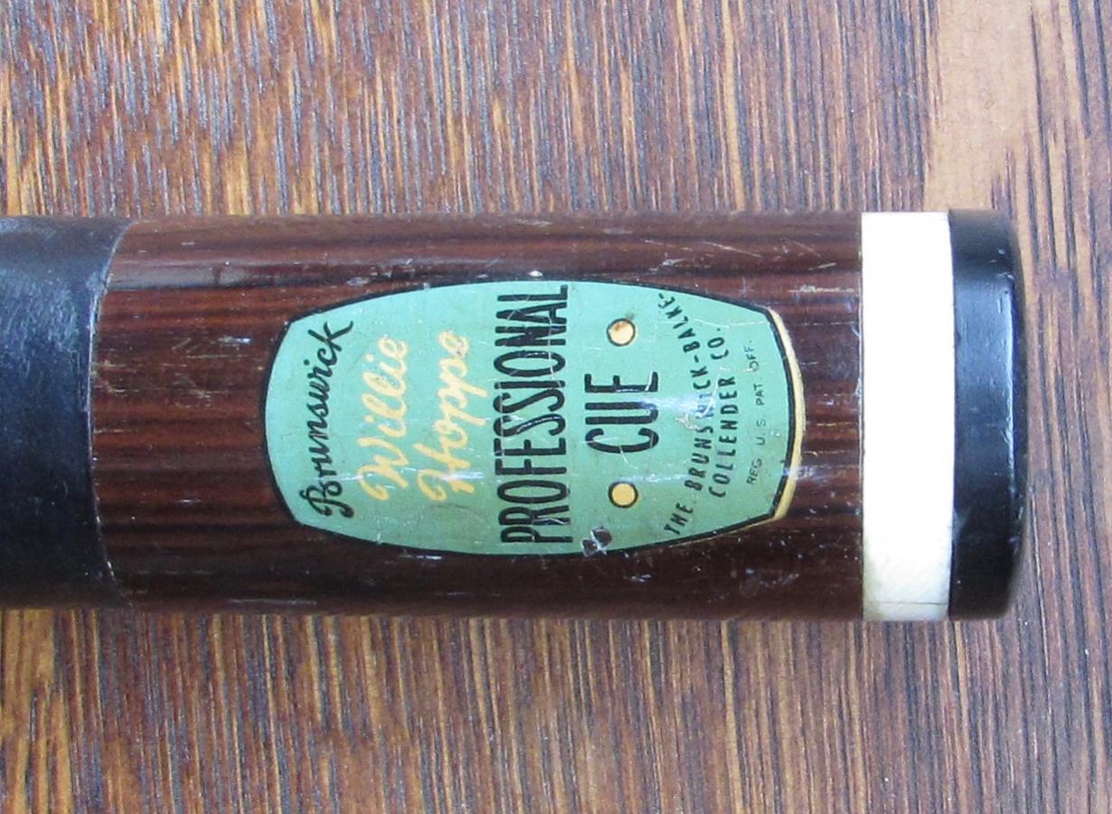 - There were two different ‘Willie Hoppe’ signatures stamped into the forearms of Titliests and Hoppe Pros. The second signature appeared while the first label (curly ‘B’) was still in use, probably post-1945 as it is never found on cues with war-time joints.