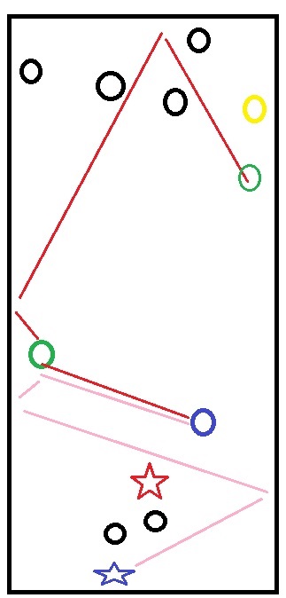 This was the bad safe, the green was the 2, blue was original cueball position and the yellow is the 9.