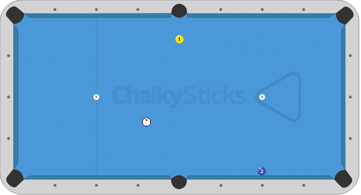 I might have misdrawn that, but I think the hit is pretty easy. Have to try it tomorrow.the cue ball is coming from 6 and hitting 2 (not exactly but ok for this discussion)