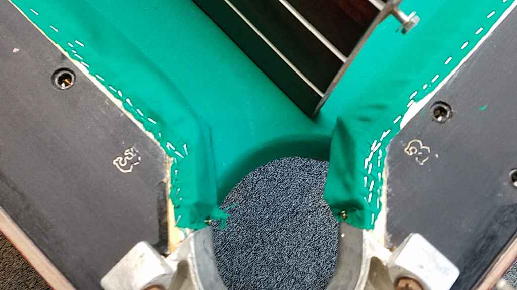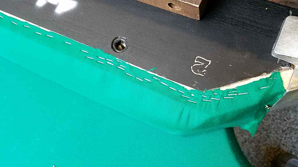I have a dynamic II table. Yeah the last time I did it, it took me about 4 days to do all 6.i had to redo, at least 3 of them twice. Pulling the rail the tight enough was the problem I had. To wear it didn't sag underneath. Once I did get it right, then I cut the cloth close the line of staples, like yours, Bearing in mind I had never done rails before. Learning experience, you might say!!