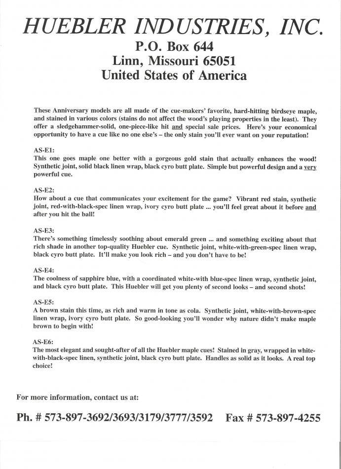 I purchased a Huebler cue and it appears to be the AS-E4 model in the pic below: