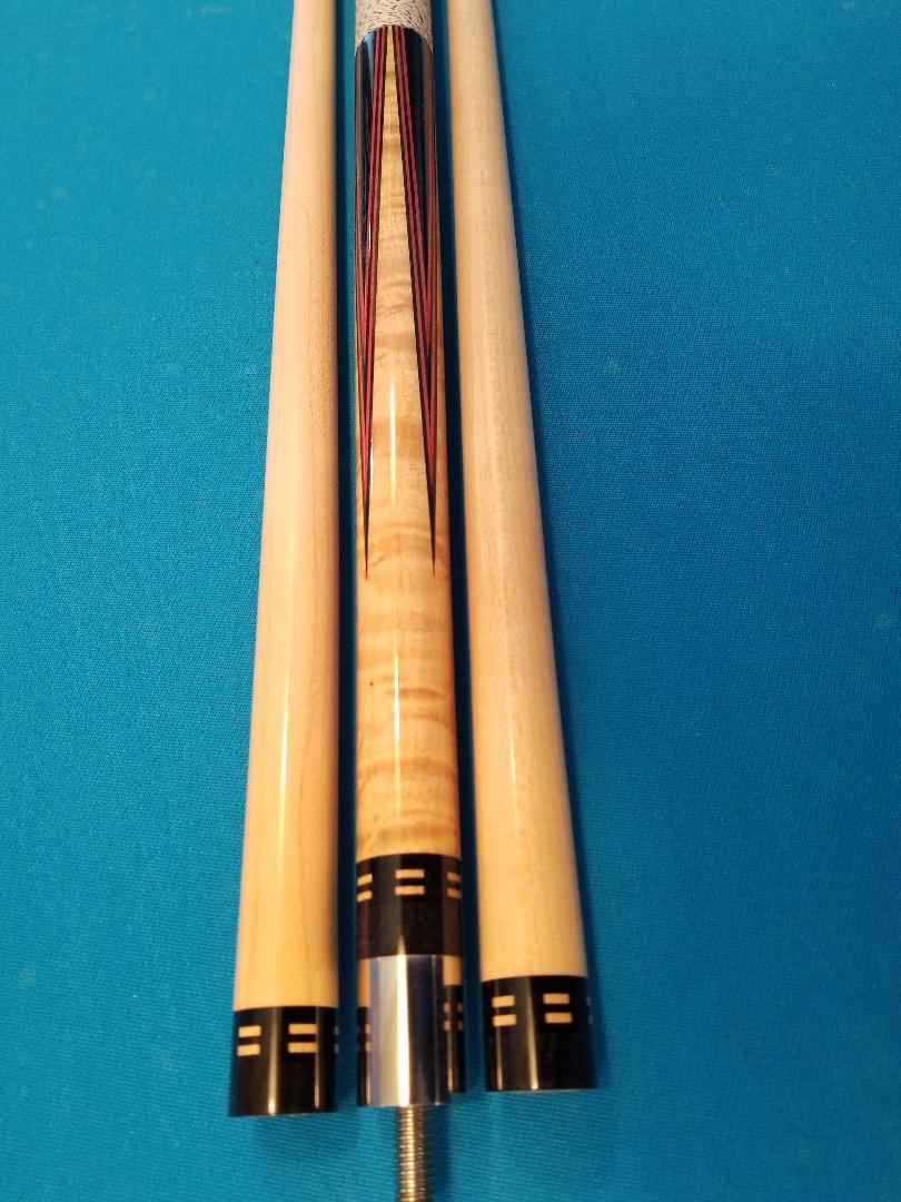 SOLD!!! Selling my first custom playing cue, purchased this custom cue from Paul in 1987, butt says Custom Shop April 1987, this was my player for many years, this Custom Ebony is a true custom ordered cue, Butt is 30", 1 shaft is 30" and the other is 29". Just received it back from Scott at Proficient Billiards, it has been restored to original condition, cue looks as good as it did in 1987.