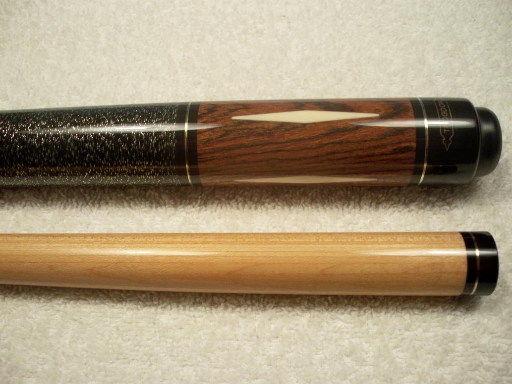 This cue has a beautiful covered gold specked wrap and comes with a laminated shaft.Radial pin,8 Ivory(real) diamonds,near perfect cond. weighs 18.6 and plays lights out. If it's something you might like,just lmk:wink: Can't go under $550 for it though:sorry: regards,Jim