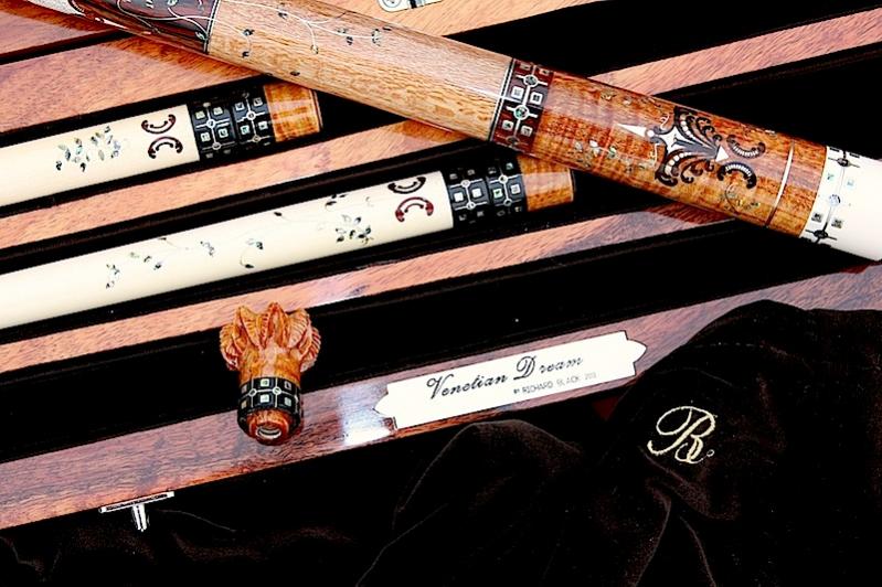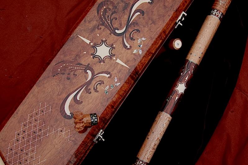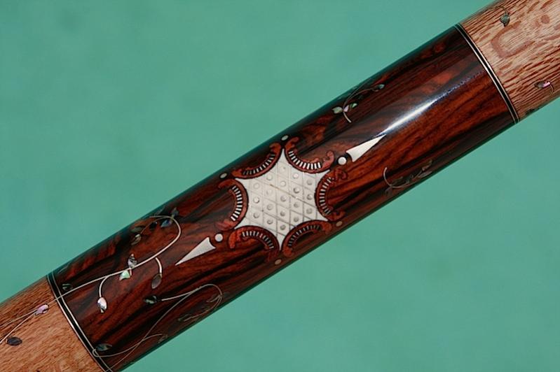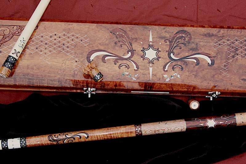 I had the opportunity to see all of the cues he took with him to the show in his shop. He asked me to pick my favorite, and it wasn't this one! There is more work in this cue than in any other I have ever seen in person. And the case is phenomenal as well. Every time I go to his shop I see something new in a cue that I have never seen before. With all of the designs out there to compare them to, that is saying a lot for his artisitic ability. It is one thing to think of a design. It is another to actually execute it on basically a wooden rod!