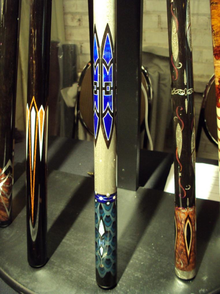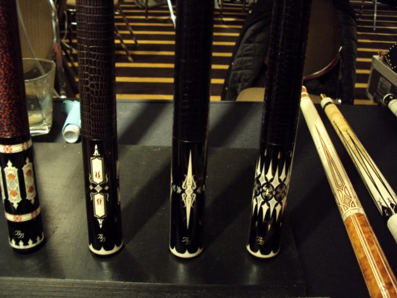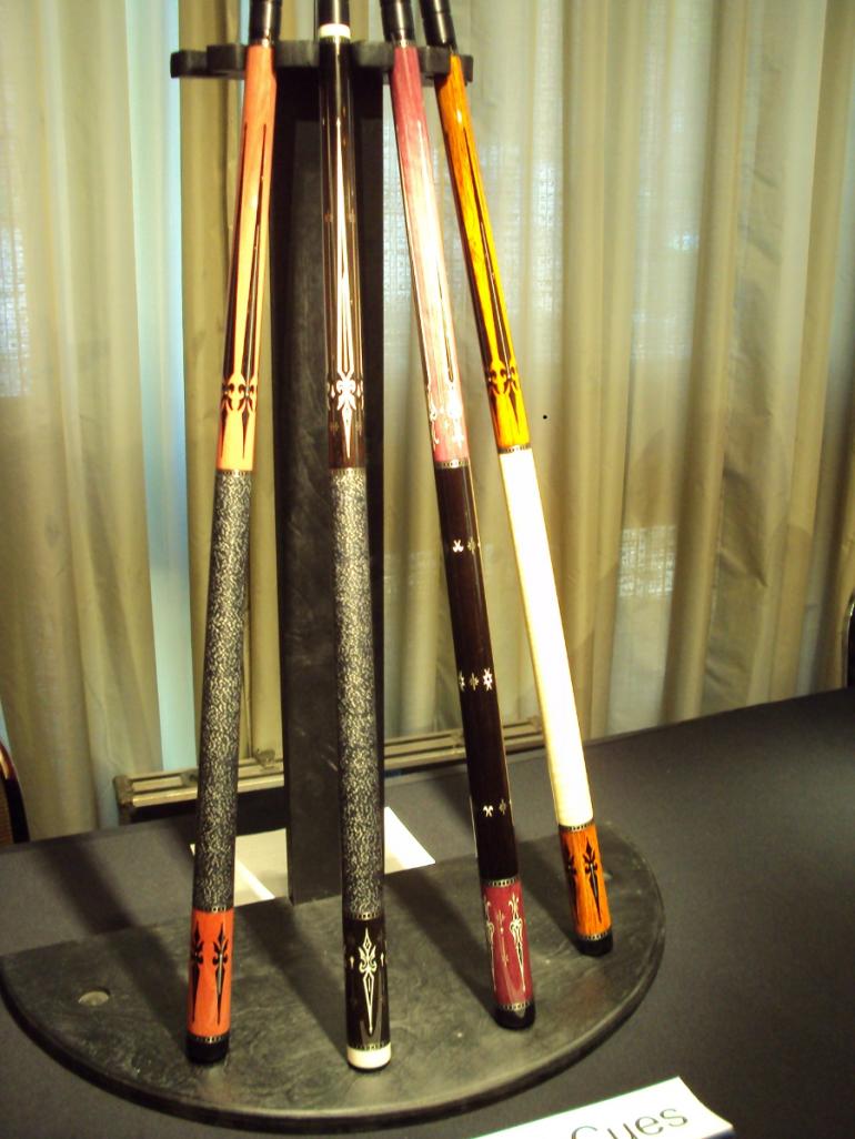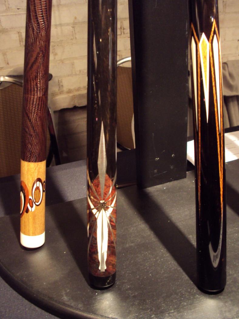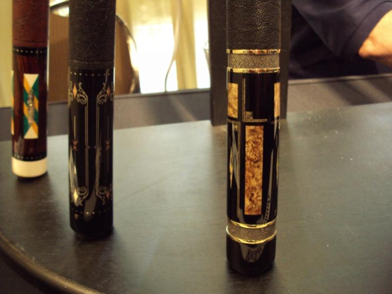 The cue builders had some awesome cues. The "Route 66" (I believe from McWorter) was something to see...incredible detail. Samsara had some beautiful cues on display...can't wait to get mine back from Rick Phillippi cues as it's there for a refinish.