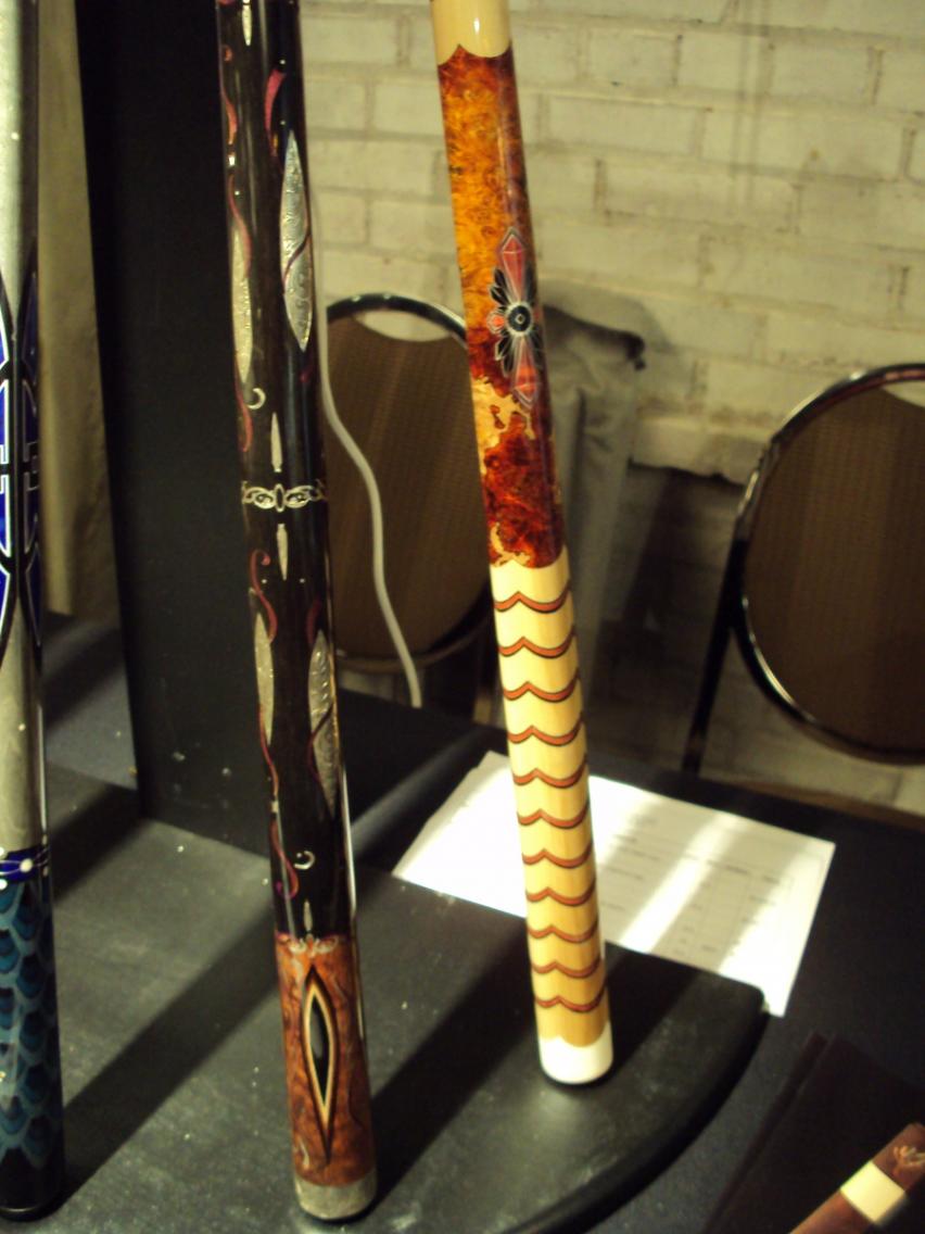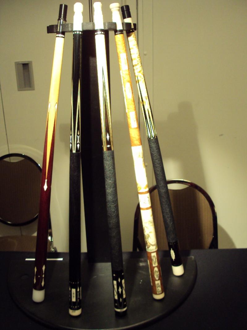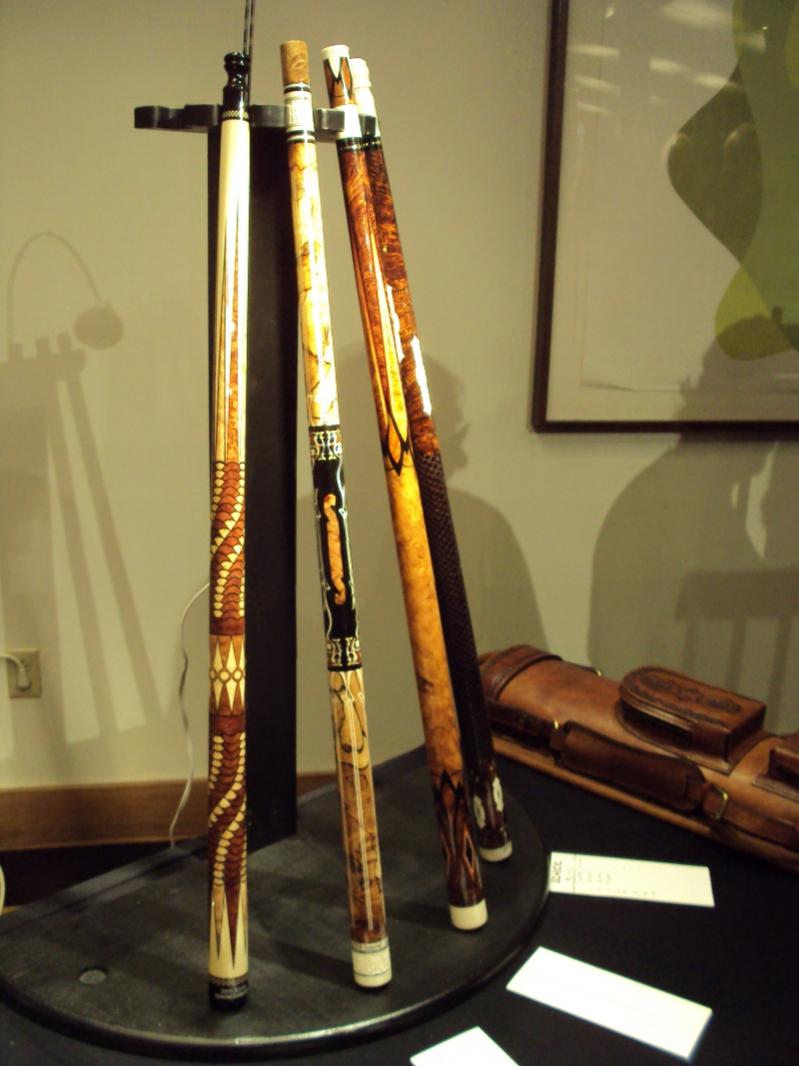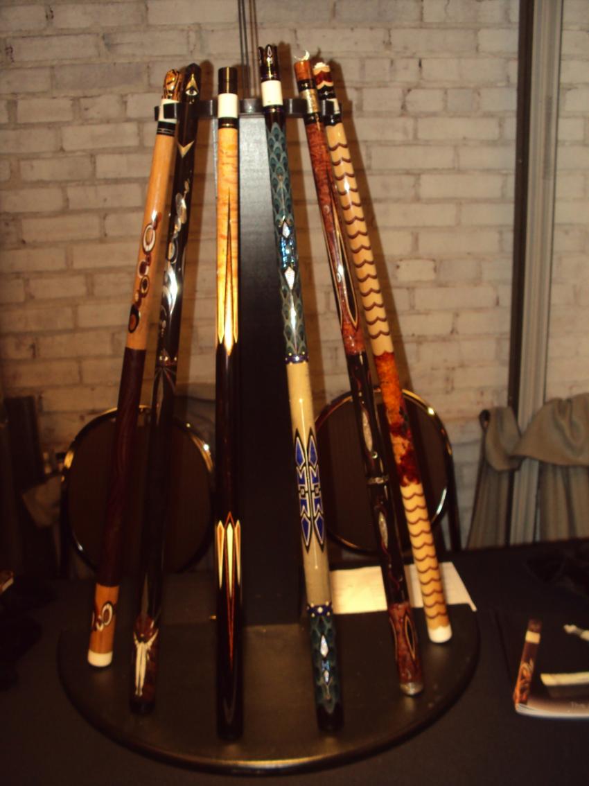 The cue builders had some awesome cues. The "Route 66" (I believe from McWorter) was something to see...incredible detail. Samsara had some beautiful cues on display...can't wait to get mine back from Rick Phillippi cues as it's there for a refinish.