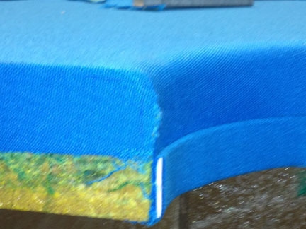 This set of pictures shows Glenn stretching the new Simonis 860HR cloth. You will notice that he uses NO staples! Unbelievable but true.