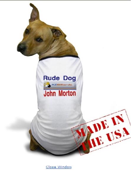 was Rude Dog (painted on the truck) so I hung my head out the window and waved. I guess the driver thought I was giving him the finger so he flipped us off,,,,,,,,,,,,LOL