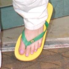 I can't believe he's still getting away with that. He carries extra pairs of flip-flops just for that situation. There are yellow flip-flops all over the South.