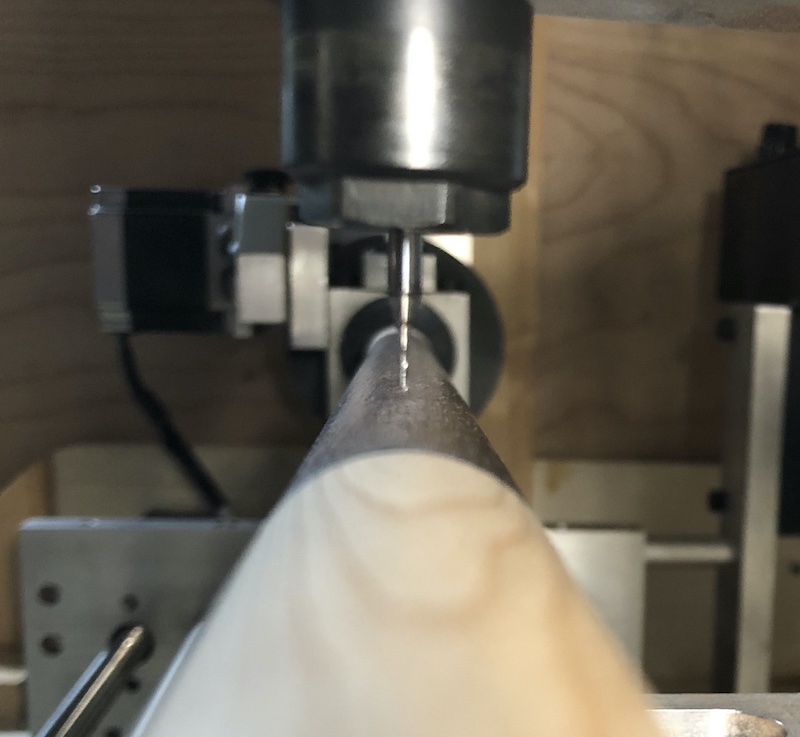 When cutting inlay pockets in the forearm of a cue it is important to get the cutter exactly on the center line of the forearm.