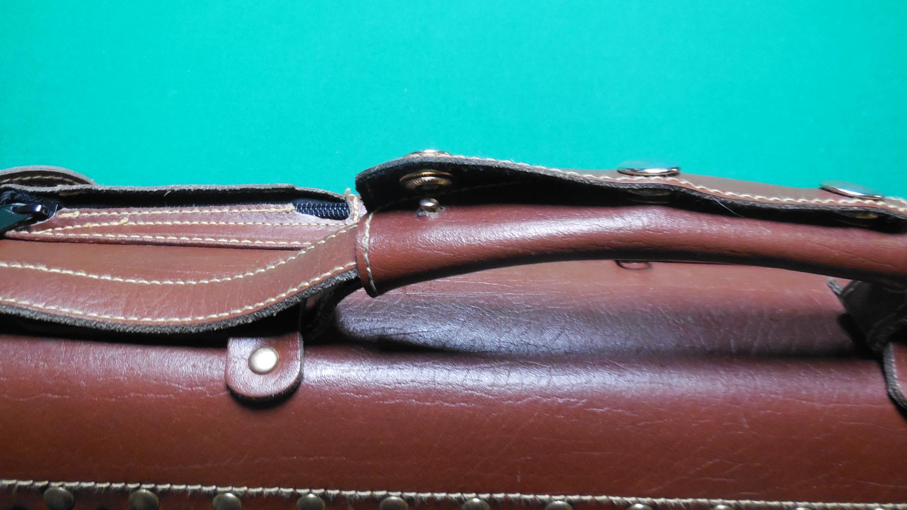 3x7 brown leather. I'm the original owner and had it at least 15 years. I sent it to them and had the pouch clasps replaced. A snap on the handle is not functioning. Overall it's very nice. $225 shipped
