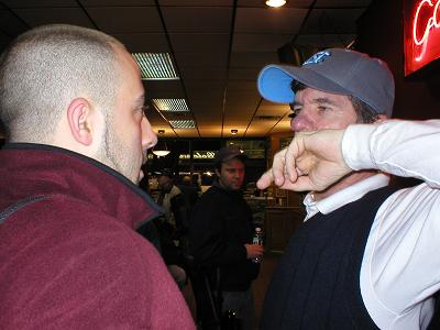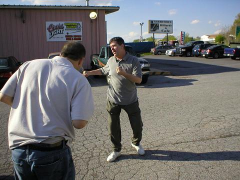 I love this picture I took of Keith and Ryan McCreesh frolicking in the parking lot of the Hagerstown Billiards and Cafe. They both must have still been on the winners' side at the time. :D