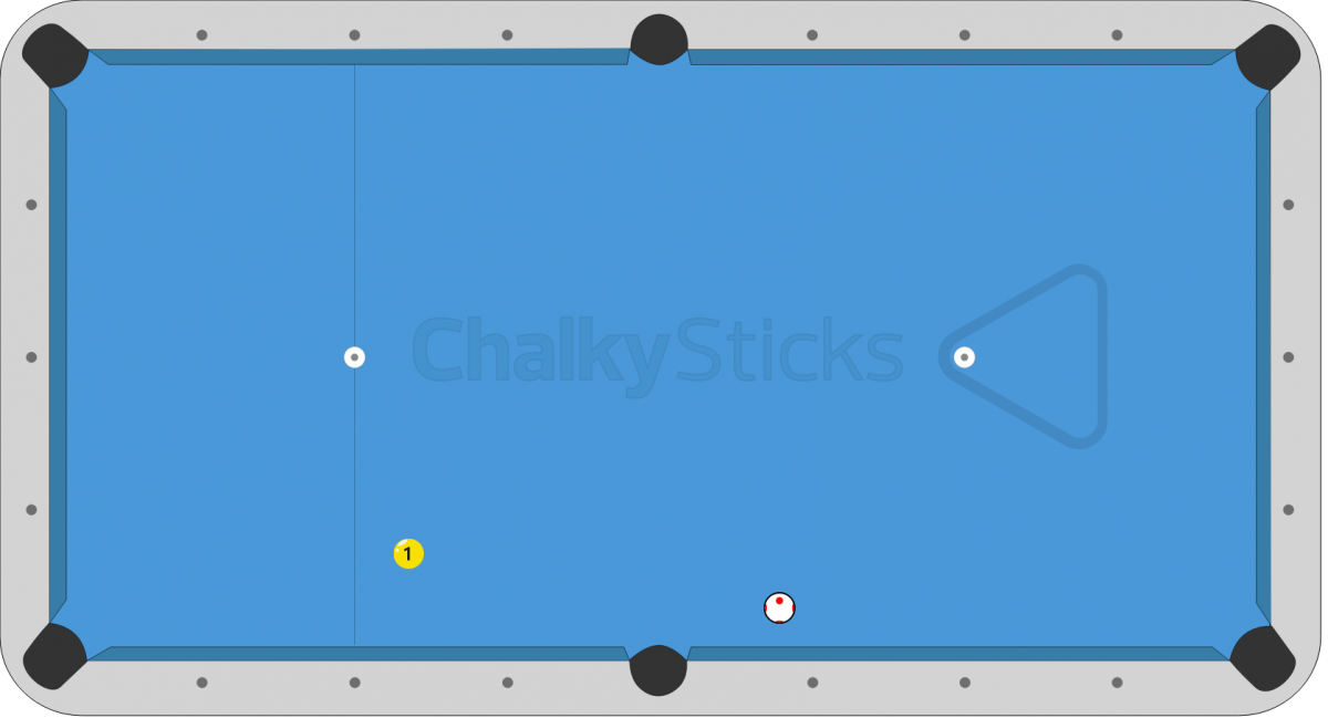 I would prefer medium-soft speed. Also, not too high on the cue ball. Just a tip above center is fine.Looks too close to a scratch shot on a small table. On a bar box I like the stun or slight draw option to eliminate any bad table roll or possibility of scratching. More in favor of using a little draw with outside, vs stun.