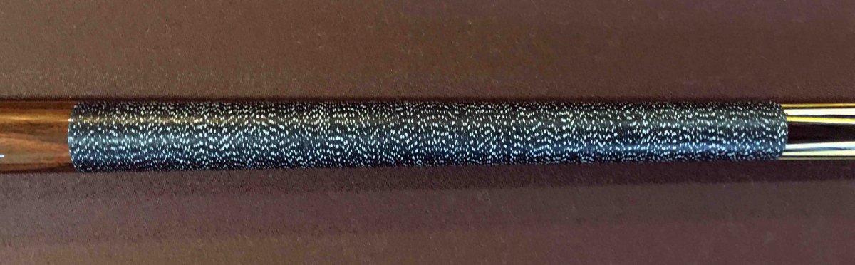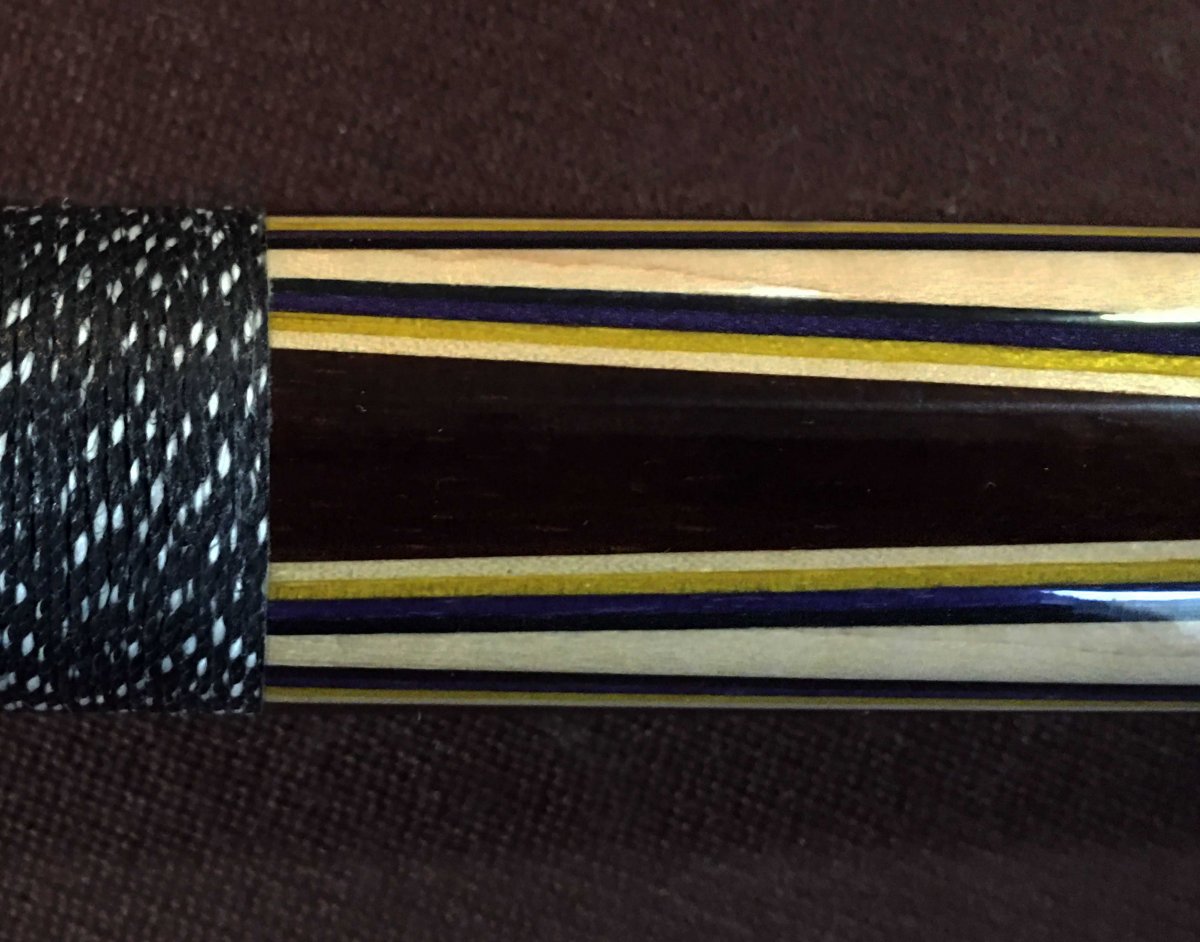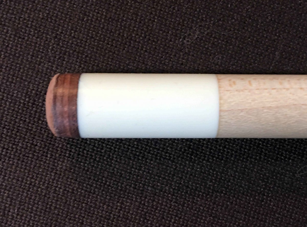 the thin silver joint rings look thinner to me than I have seen in photos of other Japan Adam cues, the phenolic joint rings on either side of the silver rings look a bit out of proportion, and the joint pin has a rounded, rather than pointed, tip.