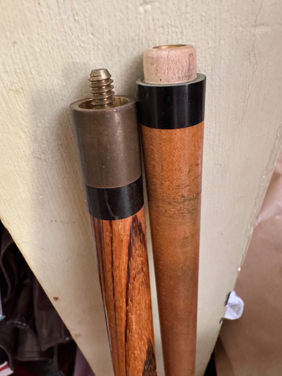 Amazing. Thank you!!Hi... Yes they are... Going by the bumper, joint pin and shaft insert... It looks to be either a Mid 60's Zebrawood Rich-Q by Sol Rich or maybe even an Abe Rich cue...