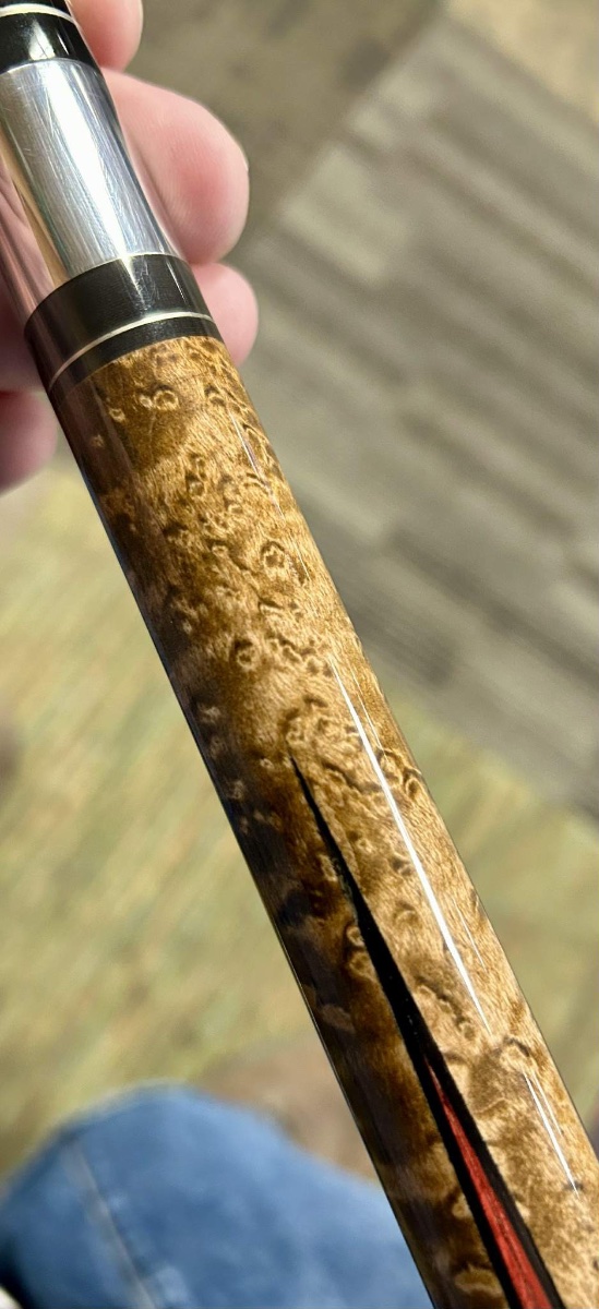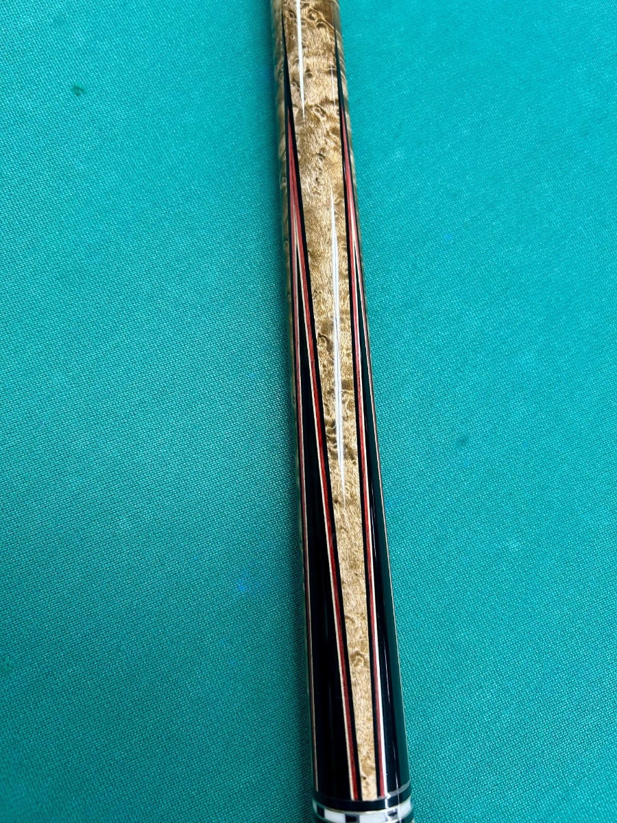 Beautiful ebony into birdseye maple 4 point cue. 2 shafts and can come with or without a 2x4 It’s George case that has some stories to tell.