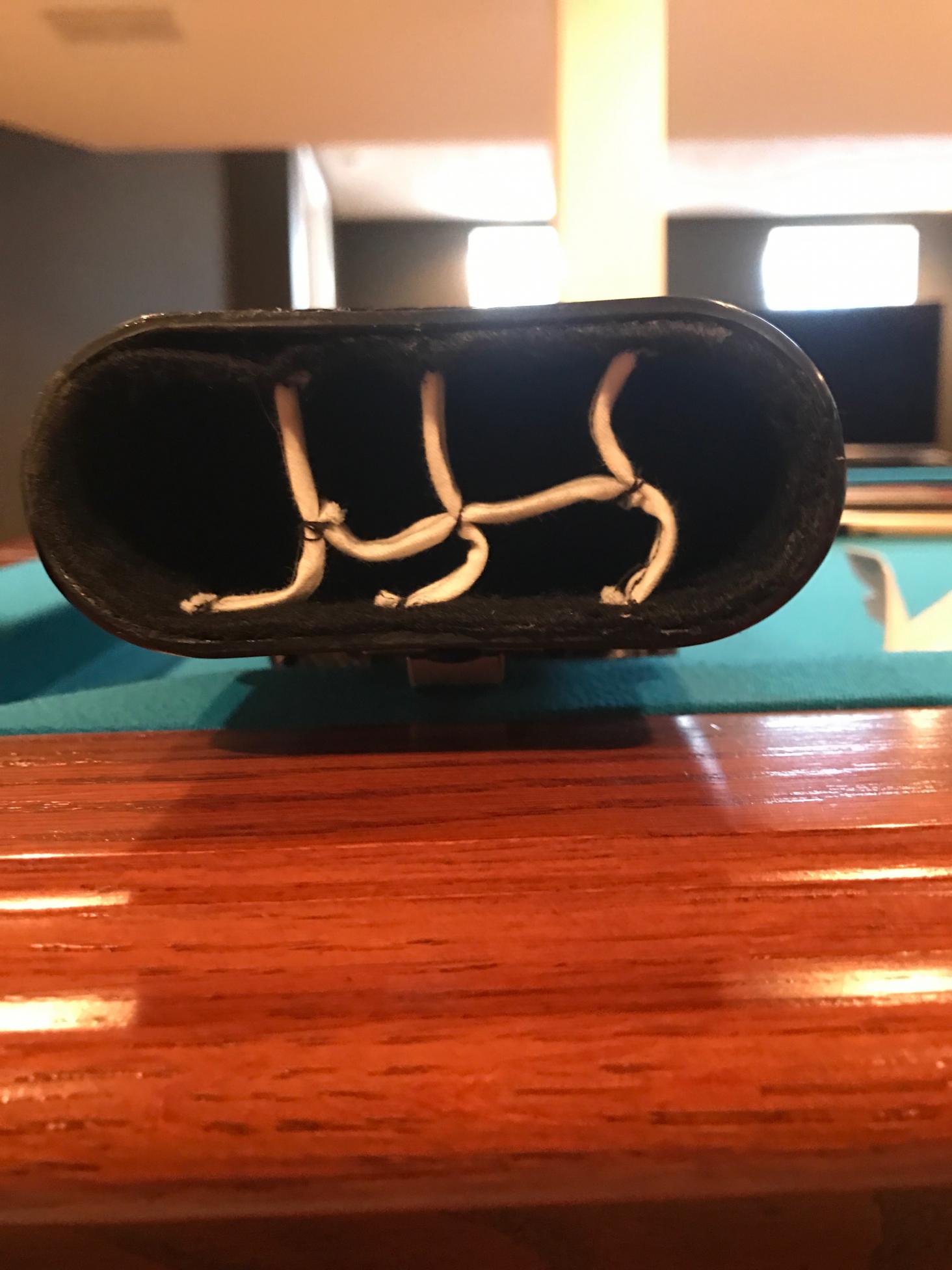 You can see in one picture the lining is a little loose on one side. There is also 2 areas that have a little white on it. I am not sure what it is but you can hardly see it in the large picture. It is above and below the lock mechanism.I have more pictures but will only allow me to post 5 at a time.