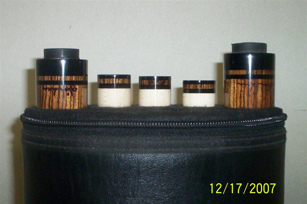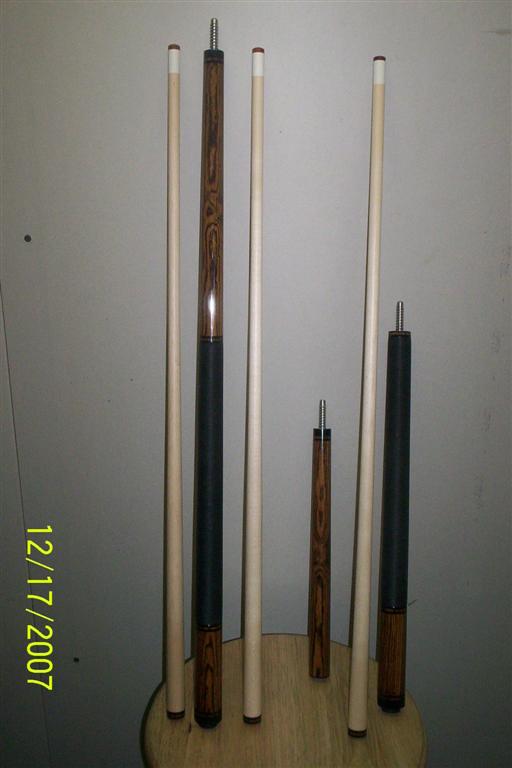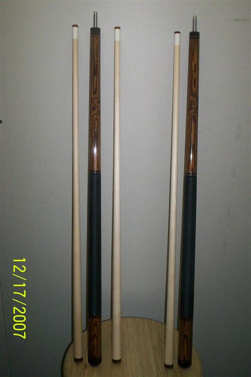 Here are the latest set leaving the Lee shop. It is a matching set of Bacote cues for Edman here on the forum. Also got him a 3x5 case to hold his new friends. Ed has been great to work with and these are his specific designs , hope you like em Ed. Thanx for the trade buddy. Enjoy , there are being shipped in the morning !