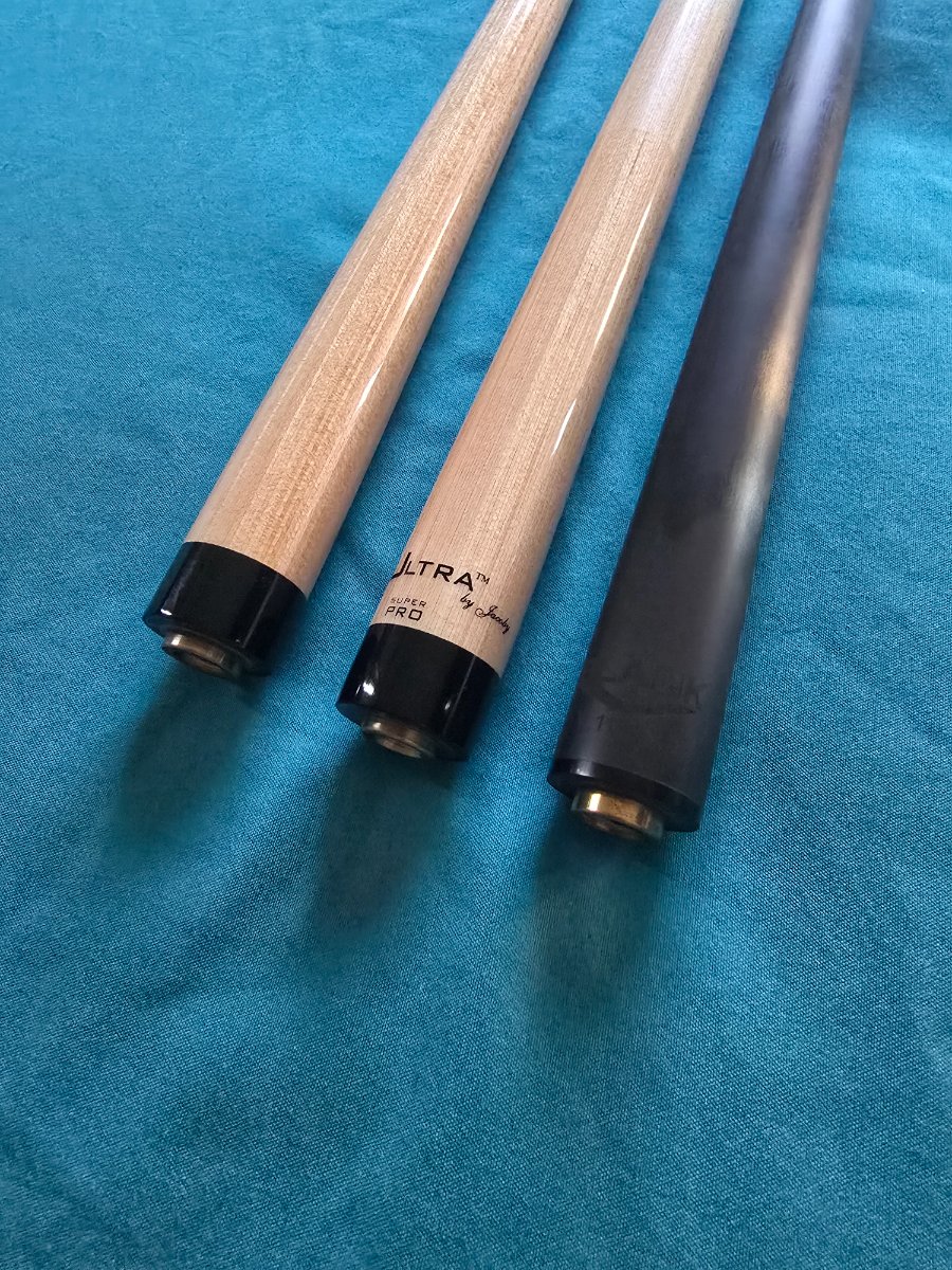 I have an 11.75 ultra (w/thoroughbred soft tip) and a 12.75 ultra(not sure of tip, probably thoroughbred and black ferrule). Both are 5/16x14 piloted and 30" long. Also have a pretty new black v4 uni loc 11.8 as well w/kamui clear soft. The ultras are 230 each. And the black is 325. Would consider trade for a cuetec pechauer or ts1 shaft. If you want different joint we can work that out too. Any questions ask.