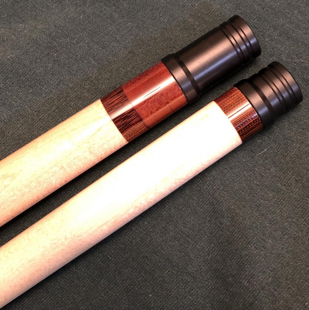 This is a simple James White playing cue. 4 pt hoppe with 4 veneers. 3/8 11 joint. White with green wrap