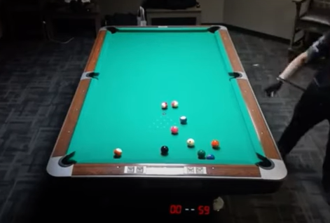 That’s a tricky shot, for most people.That combo didn't look easy to me. If someone was shooting that combo in 9-ball, shooting the 9, there's absolutely no way I give them that shot. I think it was a combo I might make 80% of the time. I'm in the camp that he should not have shot it, he had an easier cut shot into the other bottom pocket (5 ball).