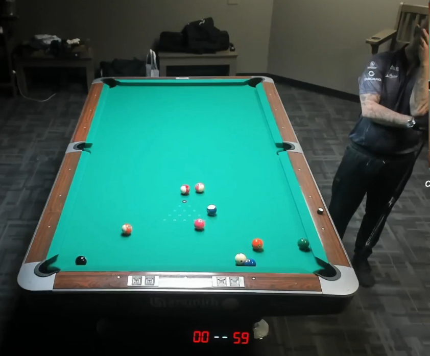 For Jayson I think it was a lapse in concentration and pressure. He was talking a bit. The mics were hot and I had the volume the whole way up. Which was very very cool. Listening to Jayson and Bobby and the background noise was great. No commentary, organic real pool.