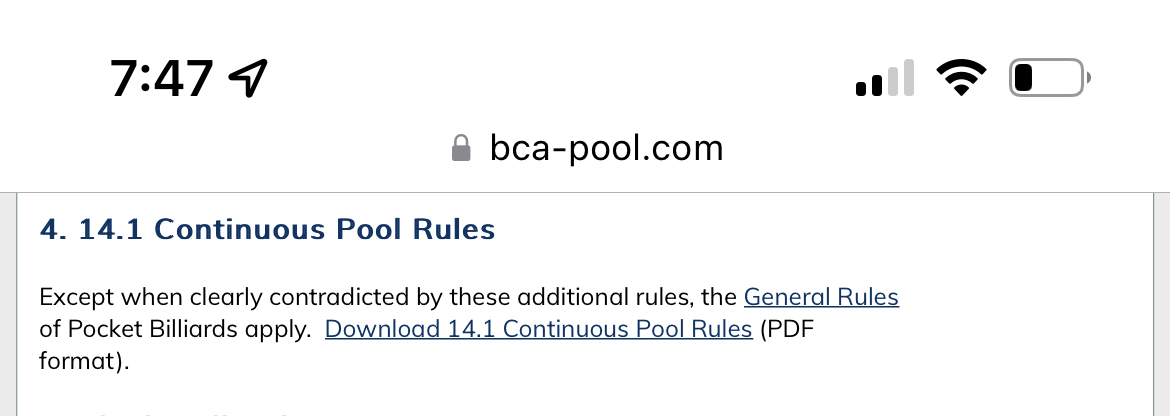I’m just not finding anything in BCA site about cueball fouls only. I only see links to the world standardized rules. And with BCA being a member of WPA, of course they would be expected to adopt world standardized rules. I don’t think there’s a BCA version of cueball fouls only.