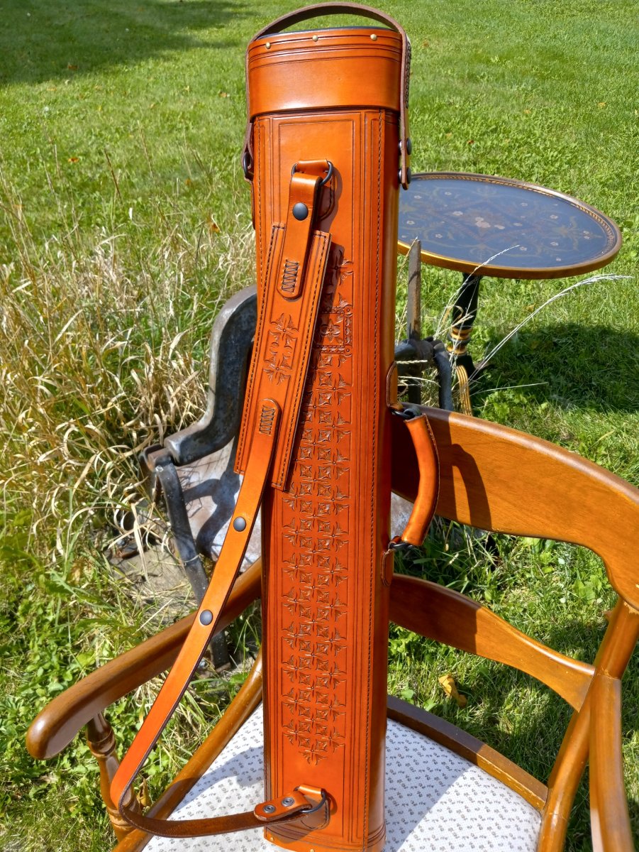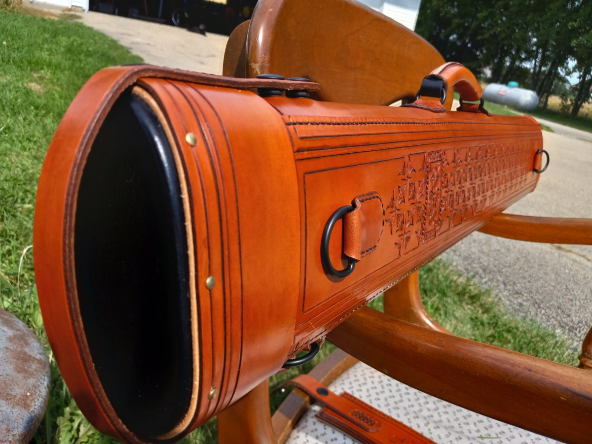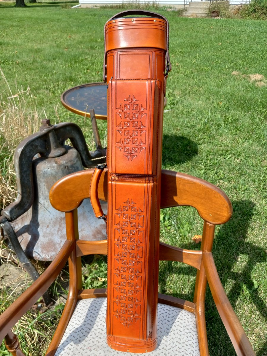 A unique combination of hand carving and hand stamping on premium Spanish Veg-tan. This case is stitched, by hand, around a 3 x 6 JB Ultrapad interior.