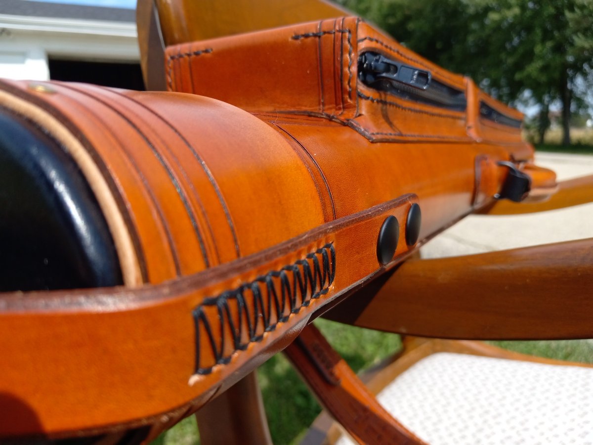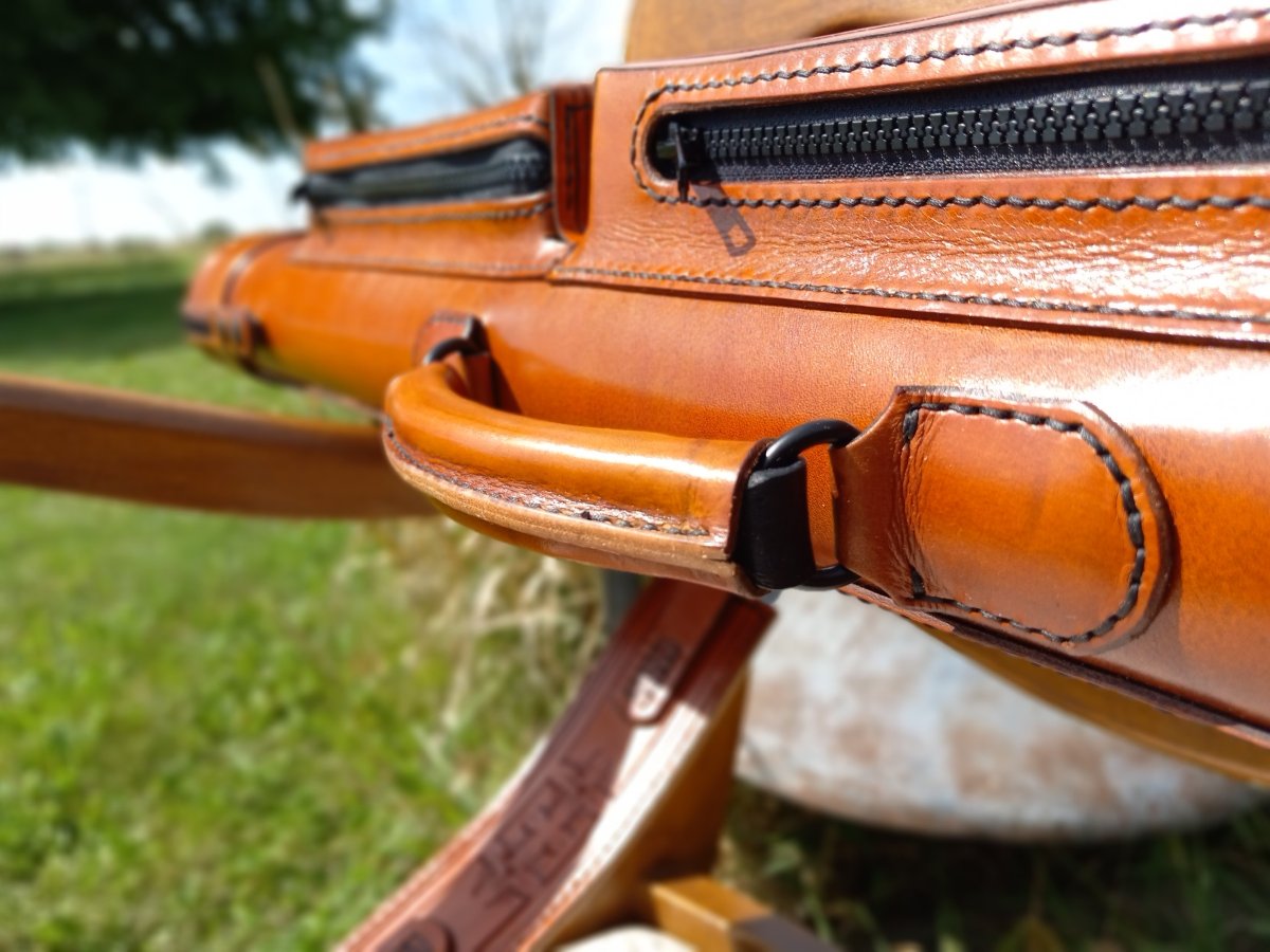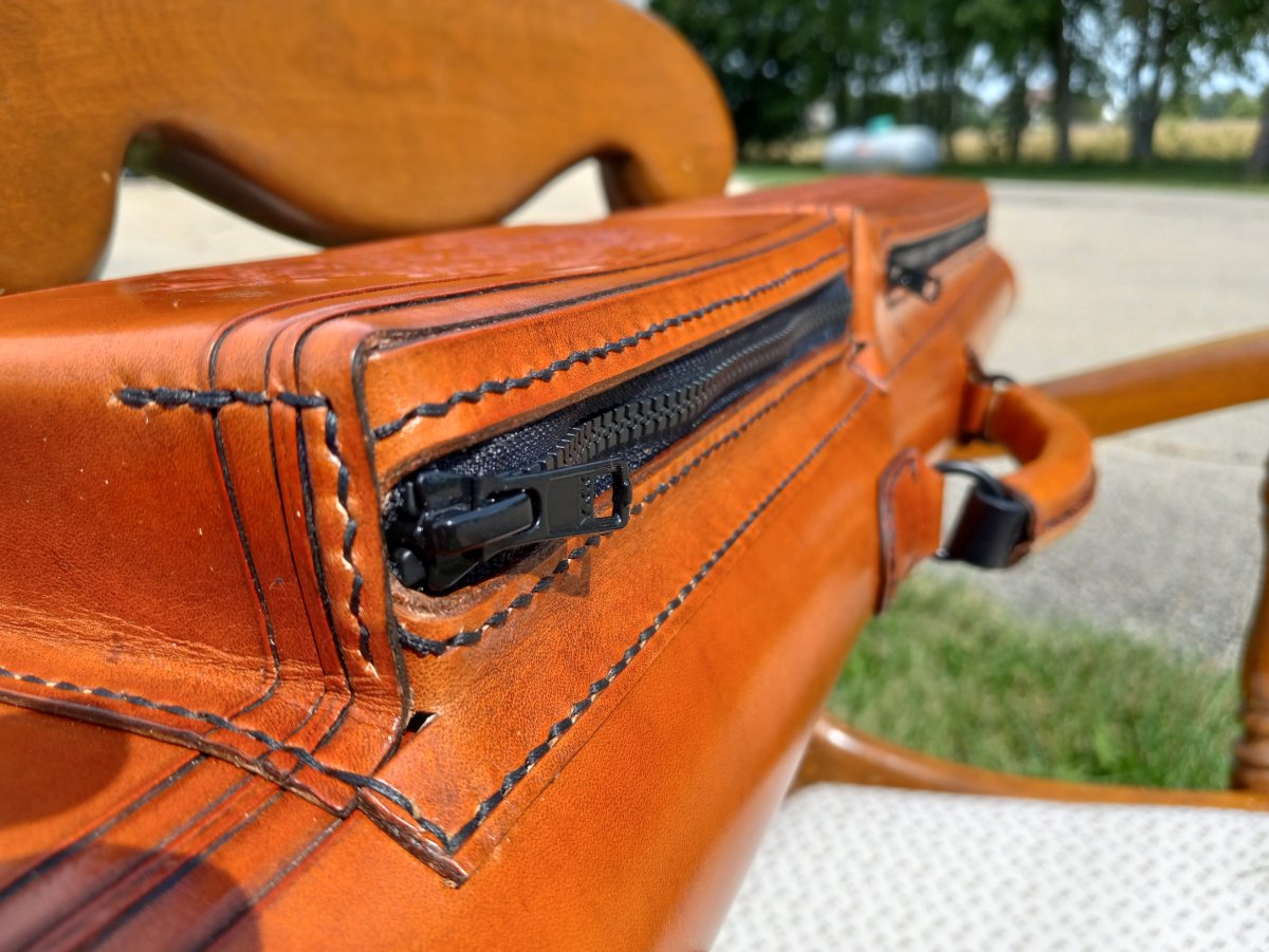 A unique combination of hand carving and hand stamping on premium Spanish Veg-tan. This case is stitched, by hand, around a 3 x 6 JB Ultrapad interior.