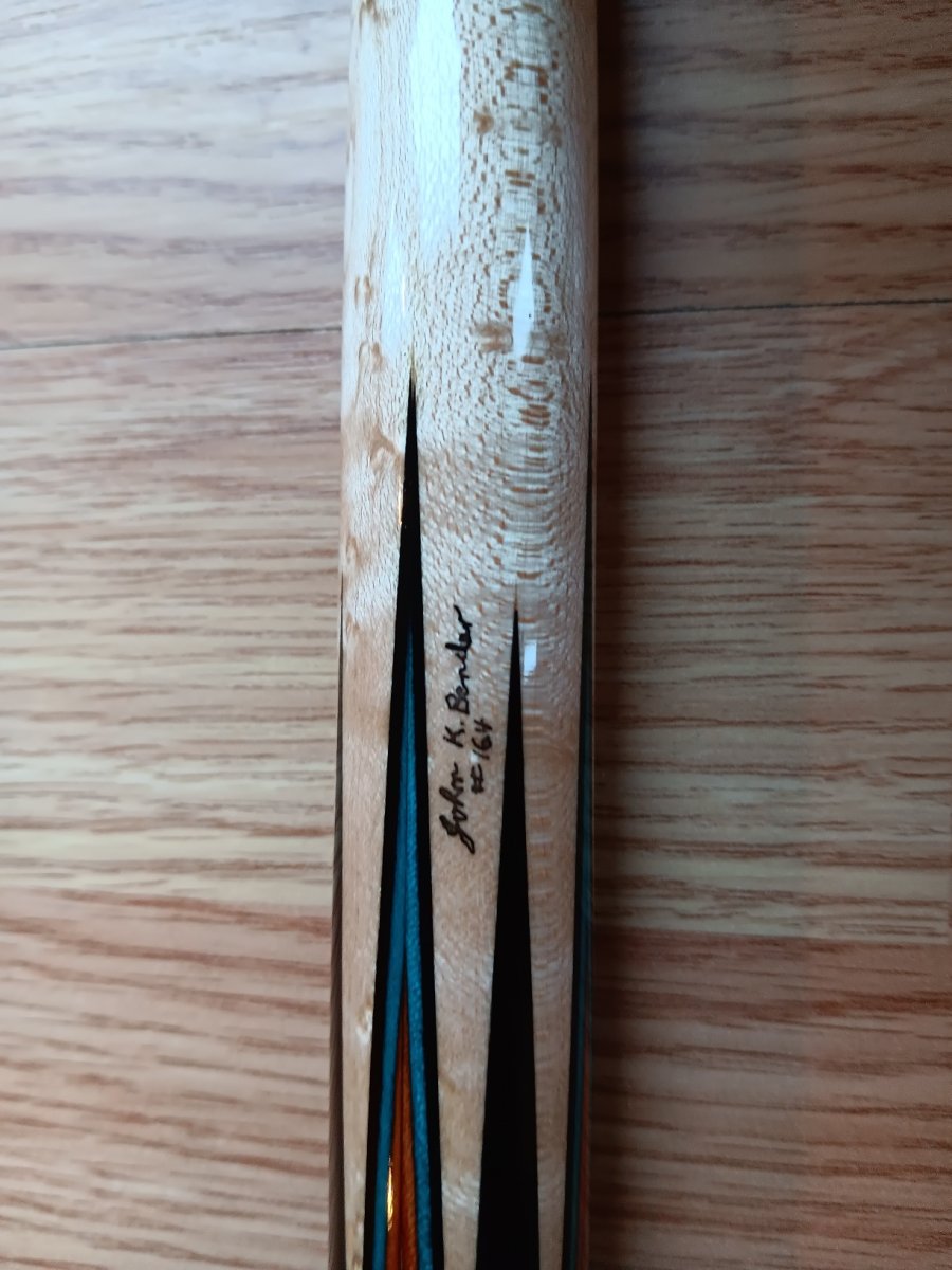For sale is a beautiful 8 point Barbell cue. Cue has 4 veneers and Mother of Pearl inlays.Cue rolls straight both together and apart. No dings or dents on the butt or shafts. 5/16x14 SS joint. 29/29 even split
