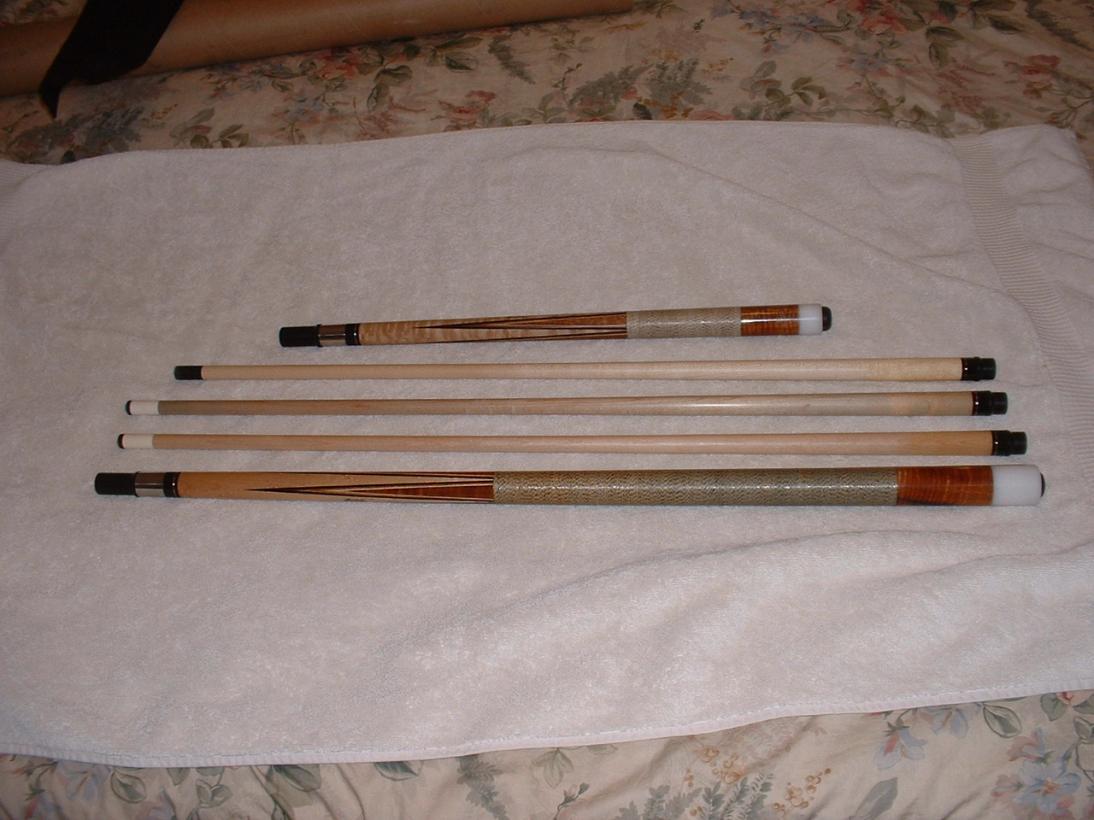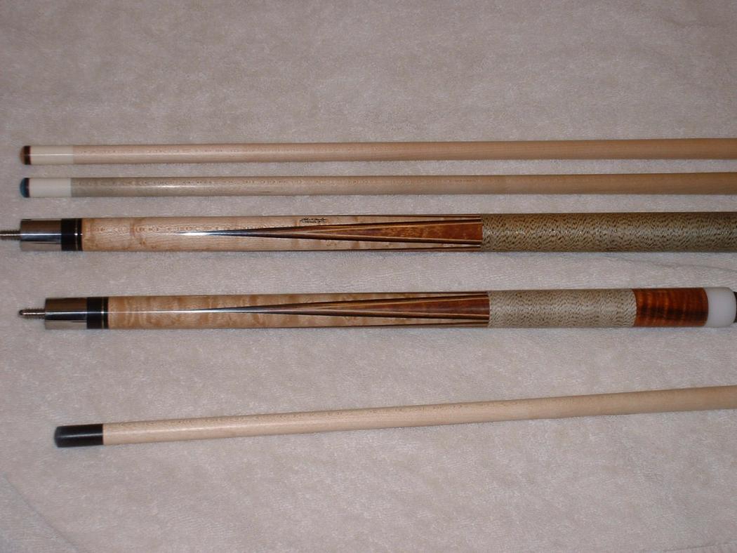 I remember John showing me these cues at the pool hall before he sold them. The jump cue is very unusual. Johns cues are deffinatly great for playing.