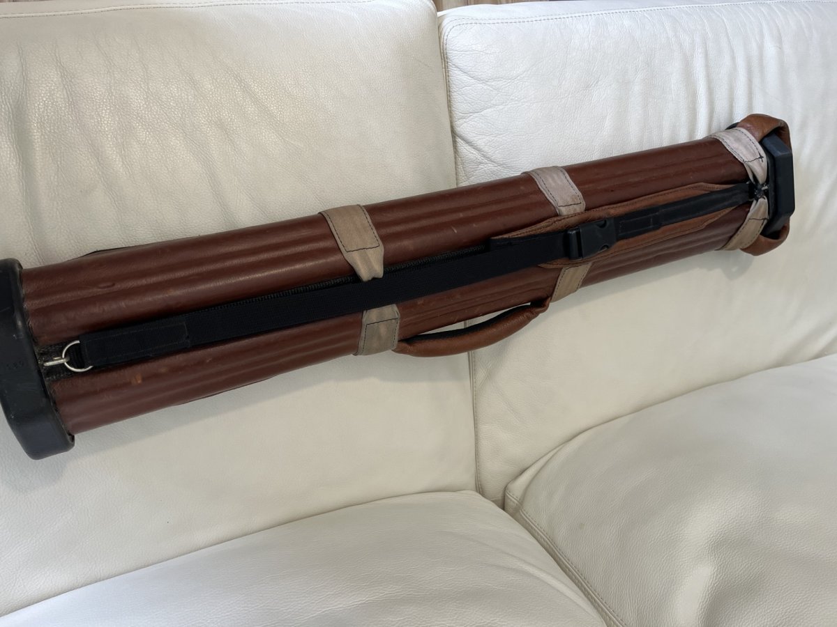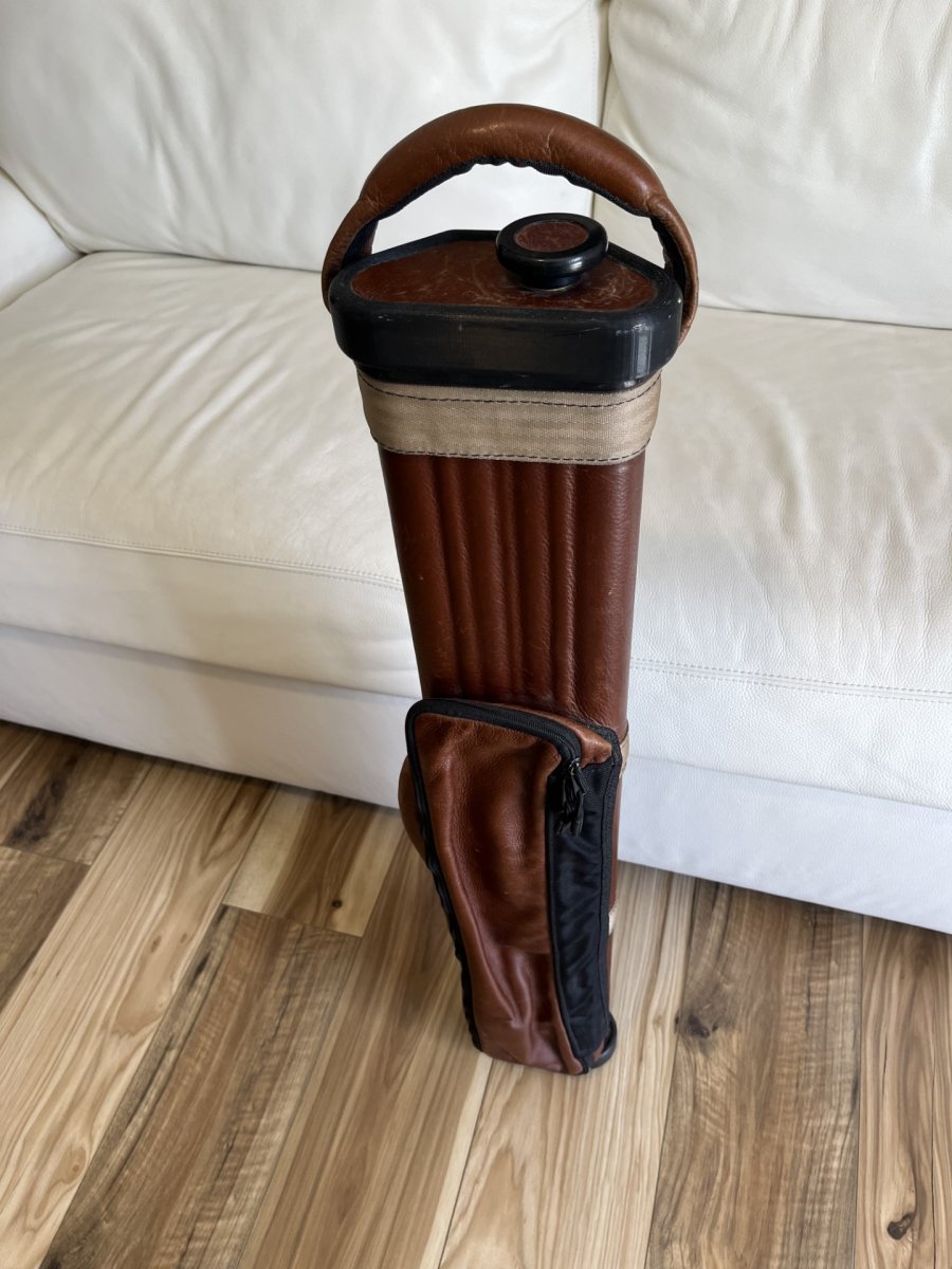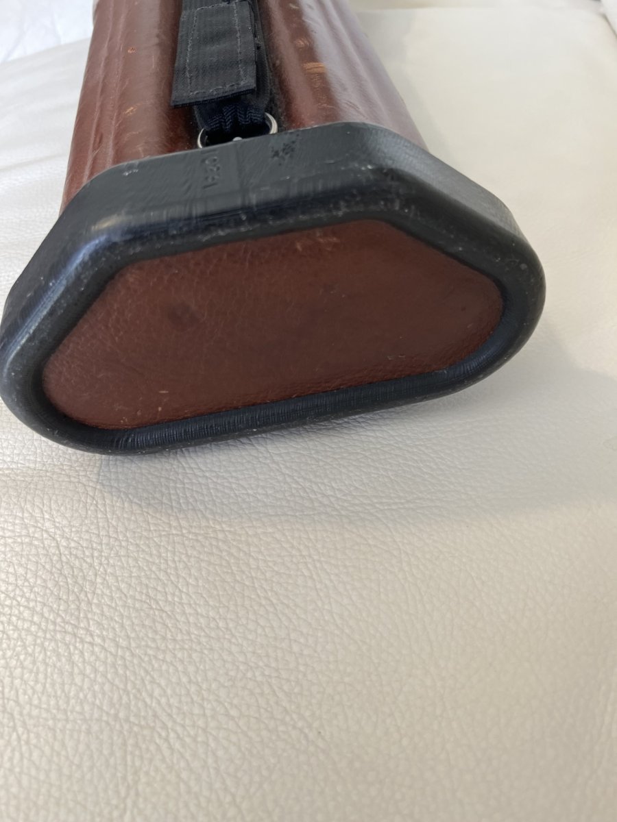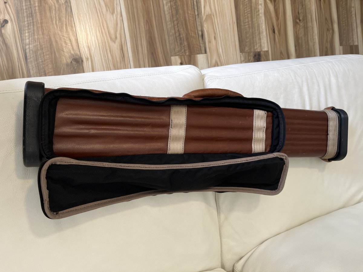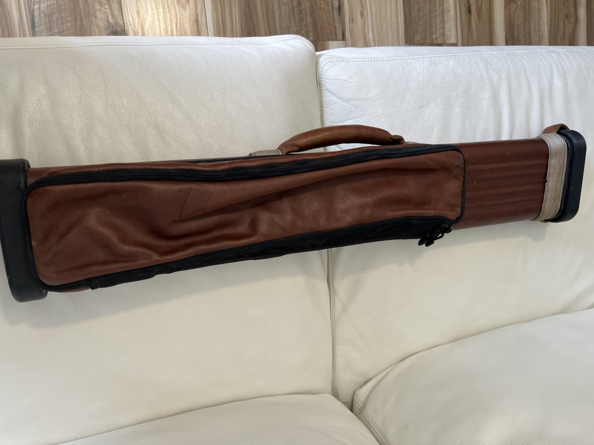 A 2x5 brown leather John Hager case, has the special inserts.