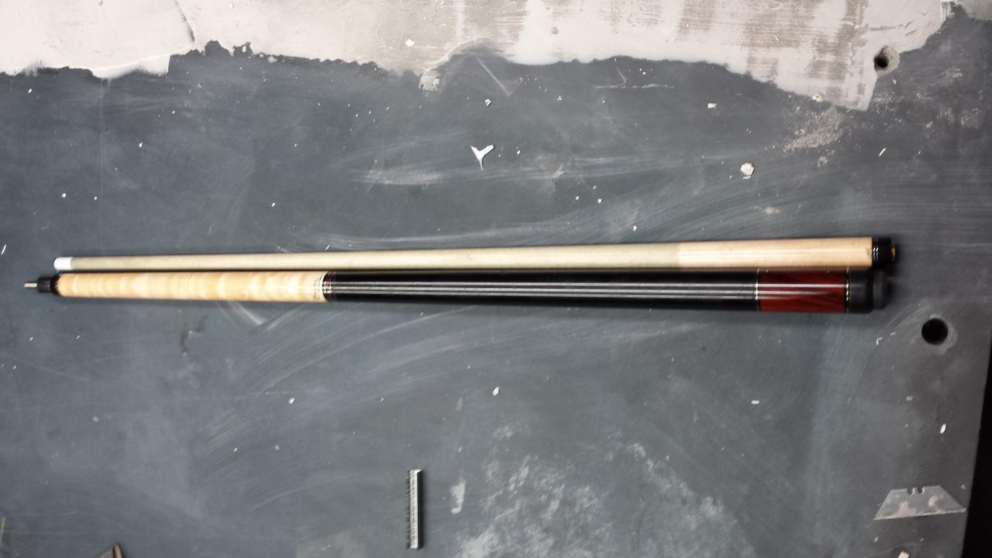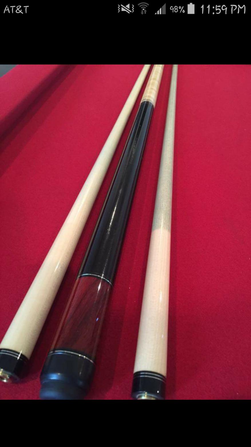 SOLD!!! 2014 Jack Madden player cue signed. 8.5/10 condition. Coco butt sleeve, black leather wrap with finish, handle BEM forearm. 5/16 14 radial pin. Comes with 2 shafts and a soft Lucasi case. Butt weighs around 15 oz both shafts are around 4.4-4.6oz. There is a weight bolt in the butt to adjust. Very solid hitting cue. Completely straight together and apart. Plenty of pictures. Pm me on here if interested. Jack said this cue was $900 when he made it and sold it. Great price to go.
