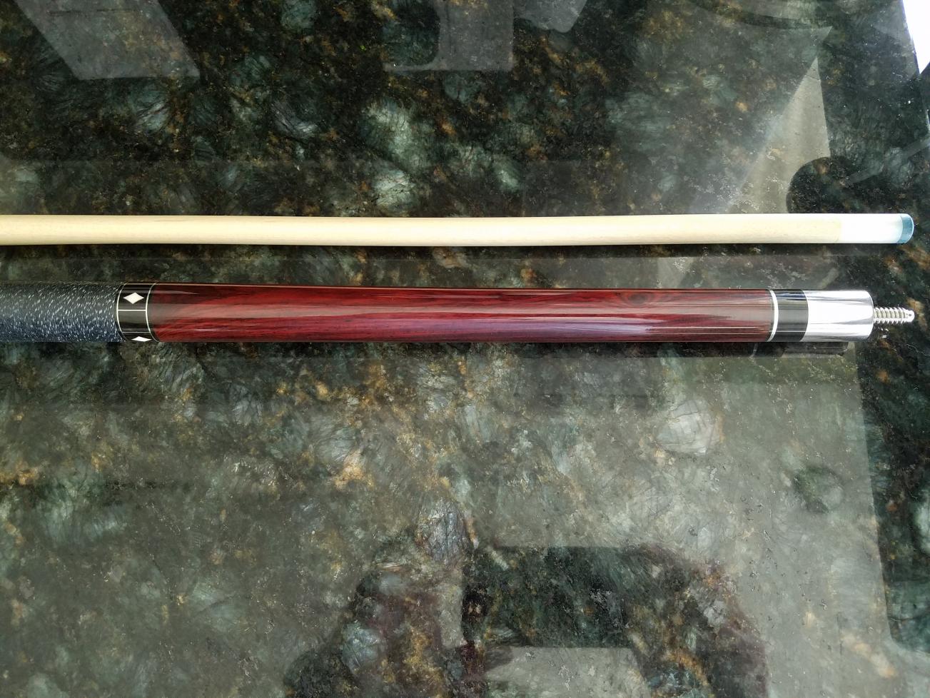 Cue is in excellent shape. Rolls straight together and apart. Butt of the cue weighs 15.6 oz and with the shaft being 12.3mm and 4 oz.