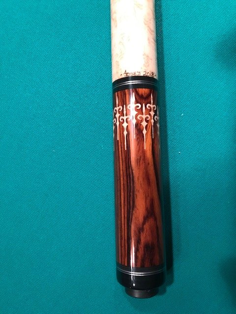 For Sale is my Keith Josey Cocobolo cue a nicely figured Birds Eye Maple handle.- it has just been refinished by KeithJosey and was gone over completely so that I know that it will be in excellent - like new condition for this sale.