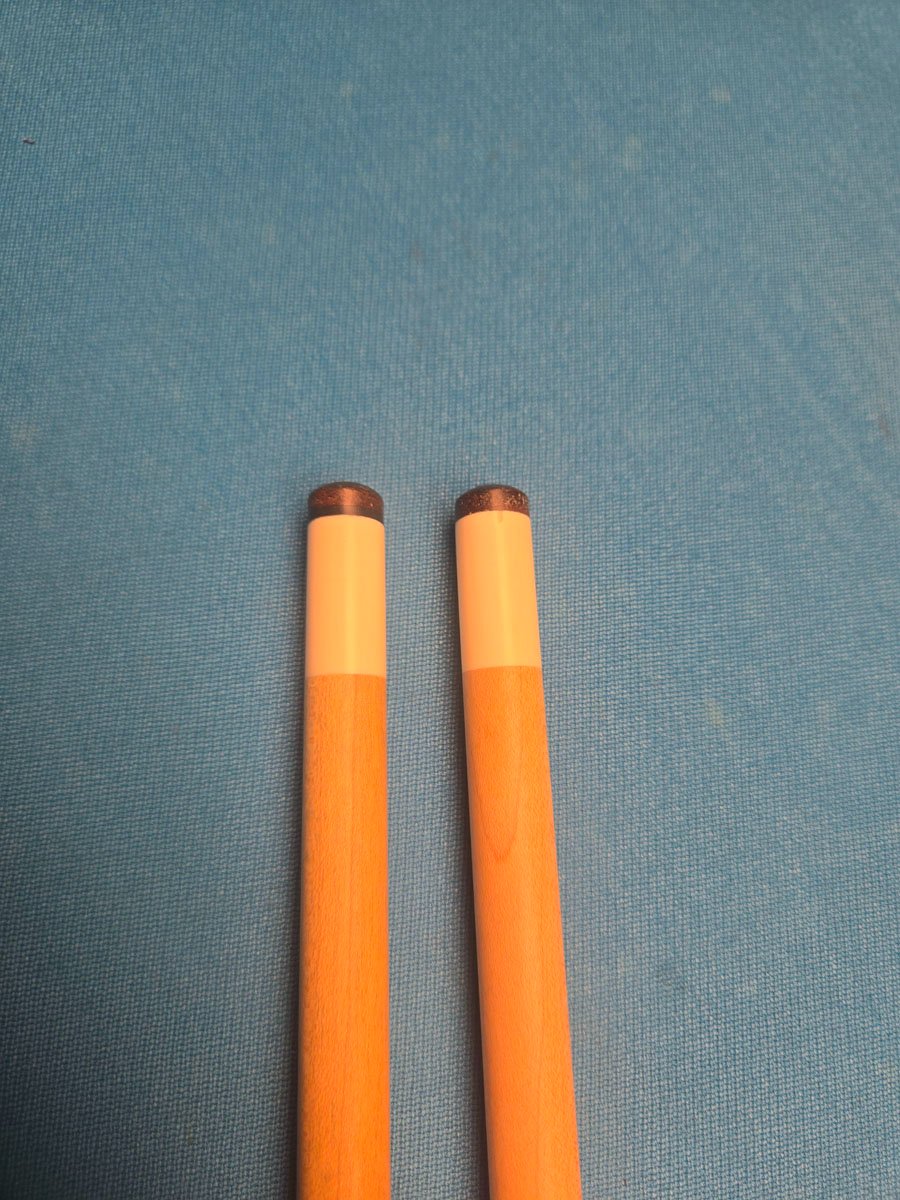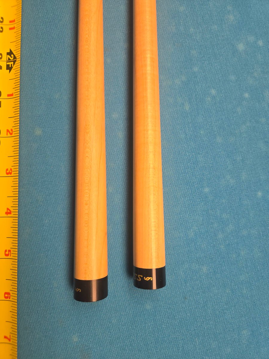 Two shafts, both with white organic iv ferrules. I tried to capture the gaining in the pictures. Both shafts have a taper roll. They roll straight when a butt is attached. Shafts are clean and free of any nicks.