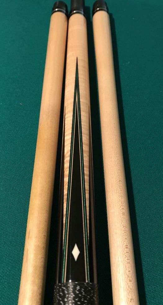 Up for sale is a late model JW - 6 points (3 high / 3 low). All points are ebony into nicely figured curly maple. High points have black / blue / black / natural veneers with diamond inlays, low points have no veneers or inlay. Sleeve contains 3 windows, matching the points, and 3 sharp diamond inlays.