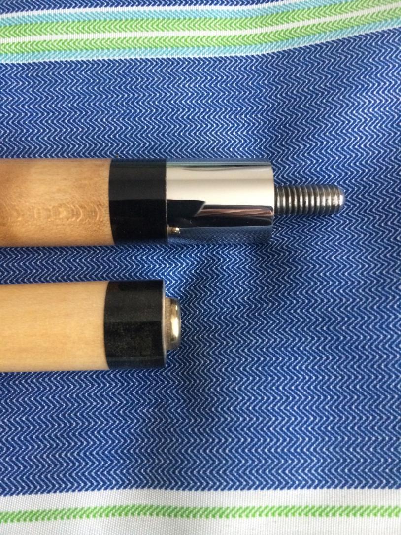 Looking for a Josswest shaft for an older Josswest (sideways W). The shaft must be reasonably straight, 1/2 black collar (linen) and at least 29" long with a 12.60mm or better shaft thickness. The joint insert is 5/16X18 for this cue not 5/16X14. I've attached a photo of the cue and original shaft. Thanks in advance...