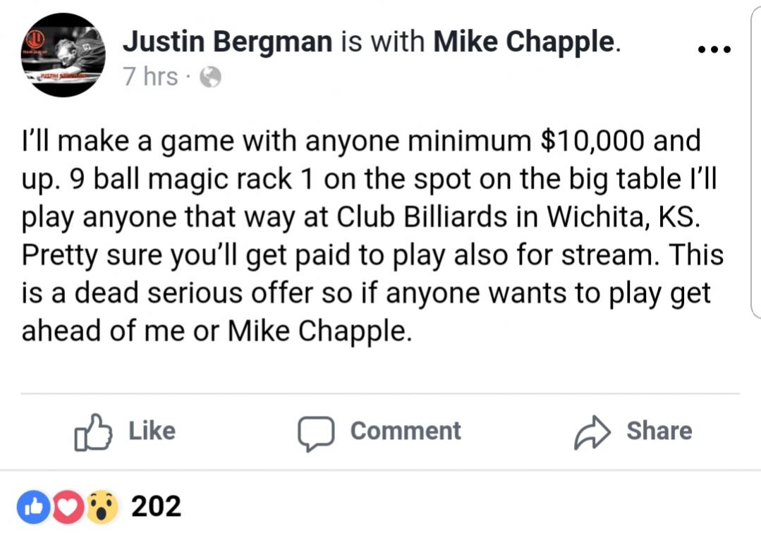 Dudong is one thing. Shane is clearly another. When was the last time anyone offered an open 9-Ball (or Ten Ball) challenge in this country that did not exclude Shane? How about a decade ago!